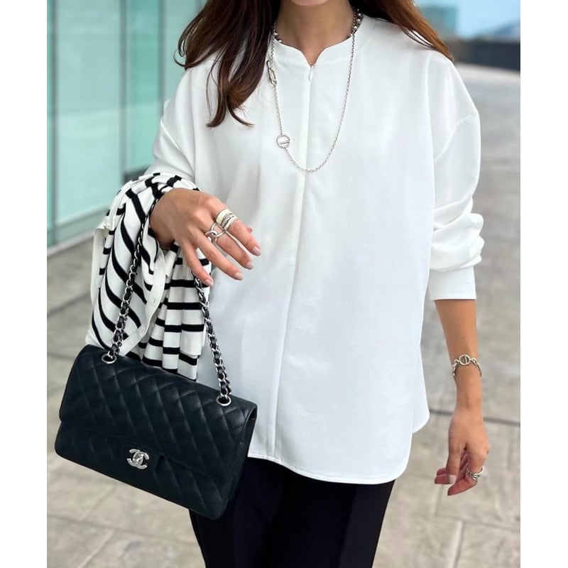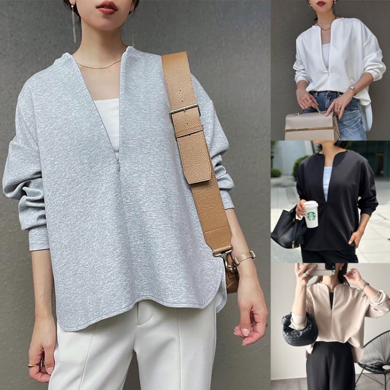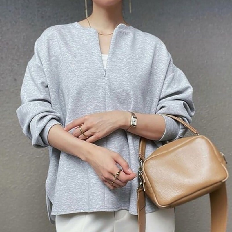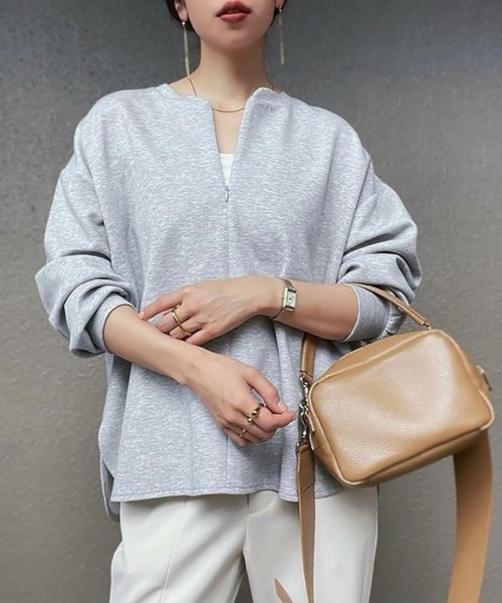 大人カジュアルなフロントジップのスウェットトレーナー。