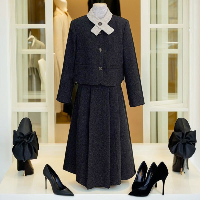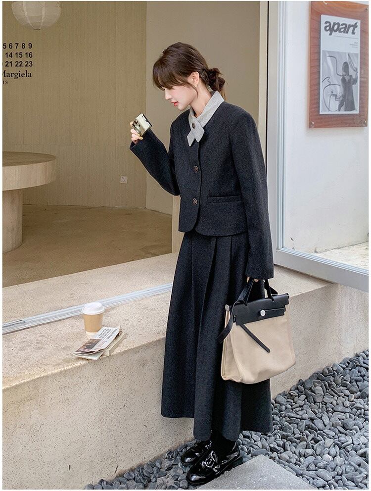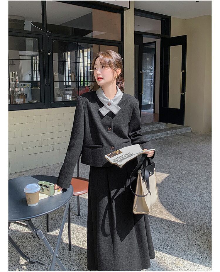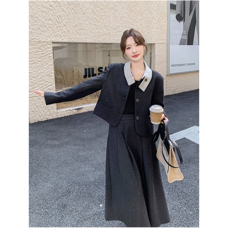 大人可愛いジャケット+フレアスカートのセットアップ。