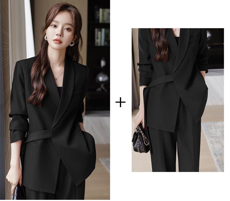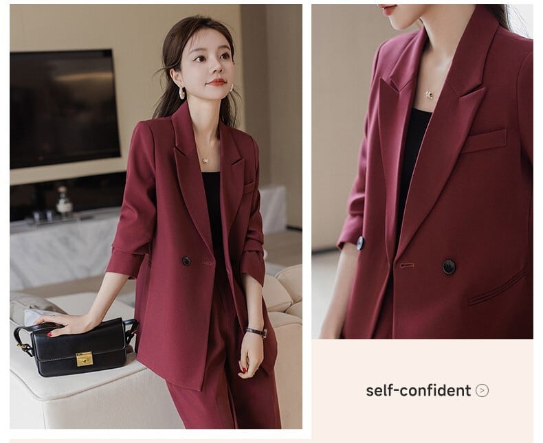 大人エレガントなジャケット+ワイドパンツのセットアップスーツ。