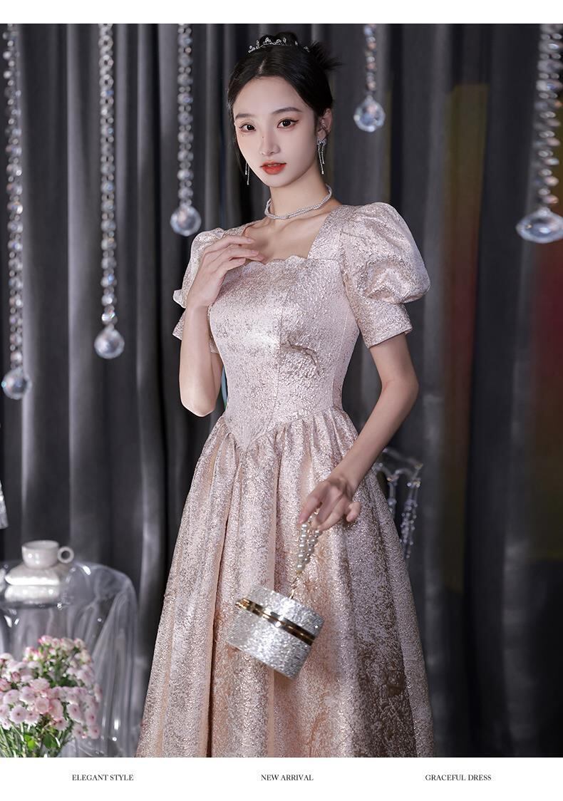きらびやかなシャンパンカラーのカラードレス。