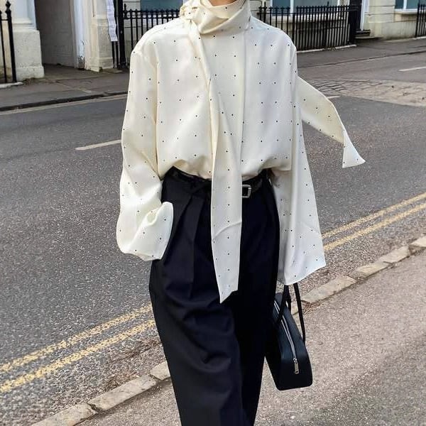 【シャツ】 シャツ レディース 大人 可愛い トップス シャツ ブラウス 韓国 ブラウス 春 夏 秋 冬 20代 30代 40代 シンプル オフィス レディース フォーマル 体型カバー きれいめ ドット ホワイト 白 S M L