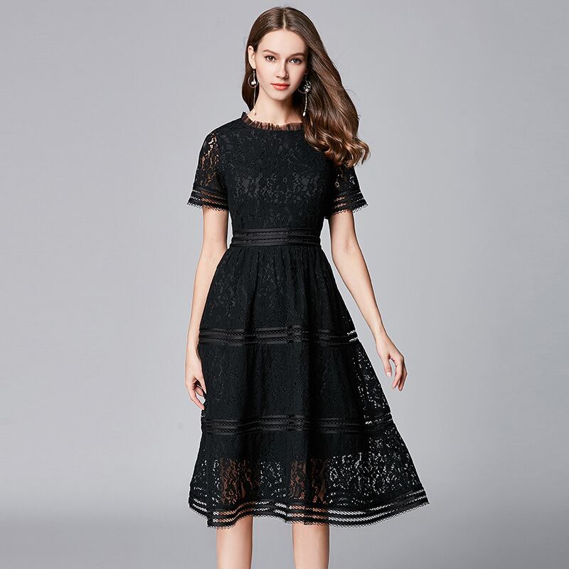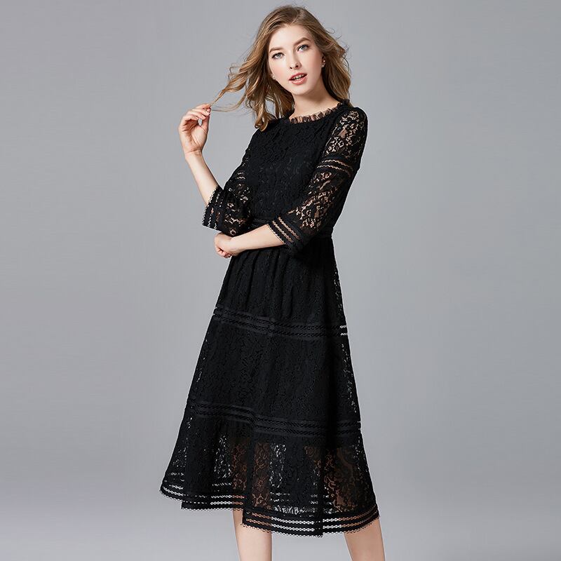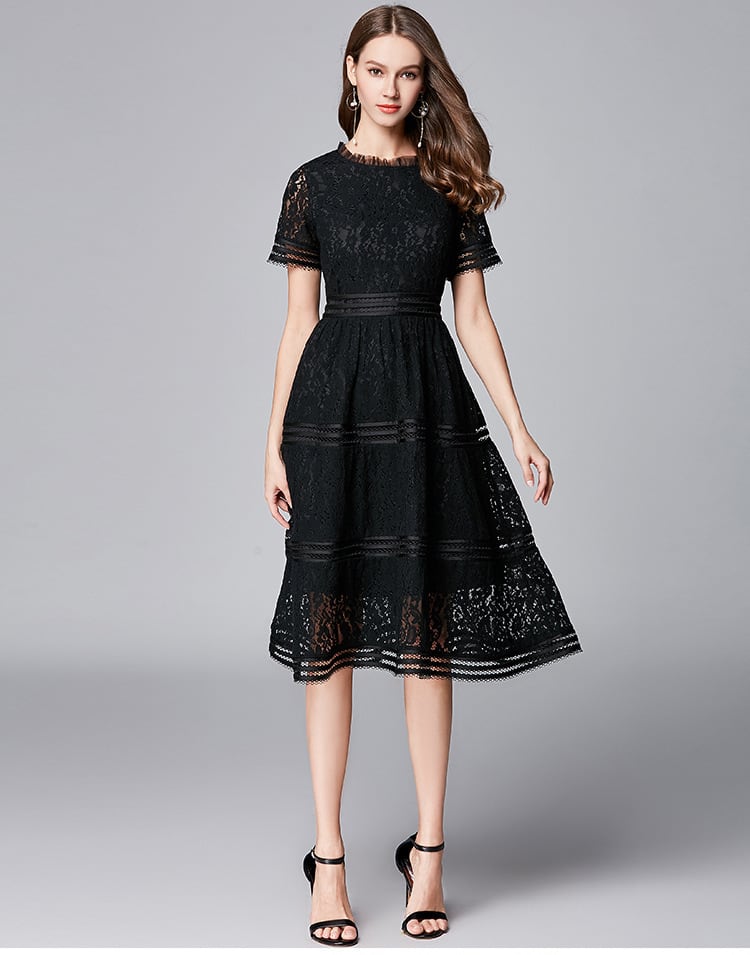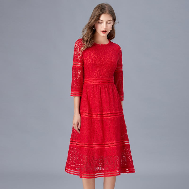 大人エレガントな総レースのパーティードレス。