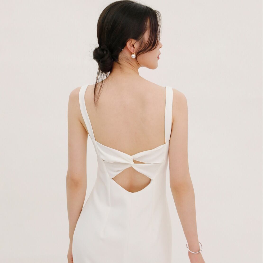 バックシャンな後ろ姿が目を惹くウェディングドレス。