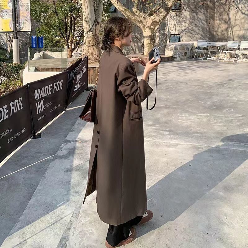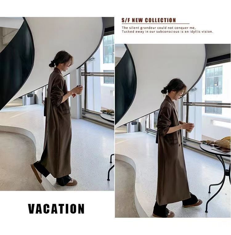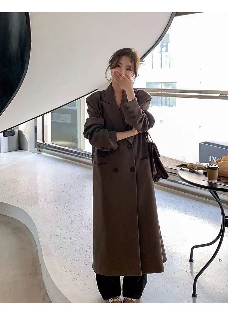 ダブルブレストで縦にすとんと落ちるシルエットですっきりと着用いただけます。