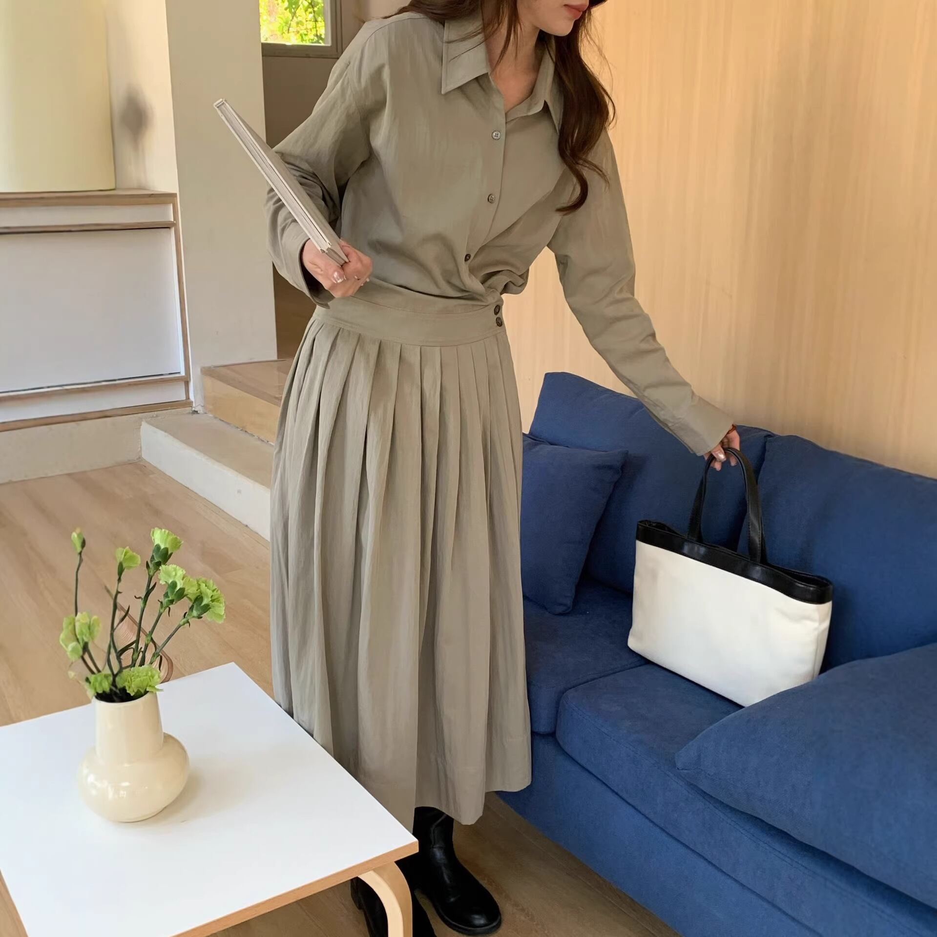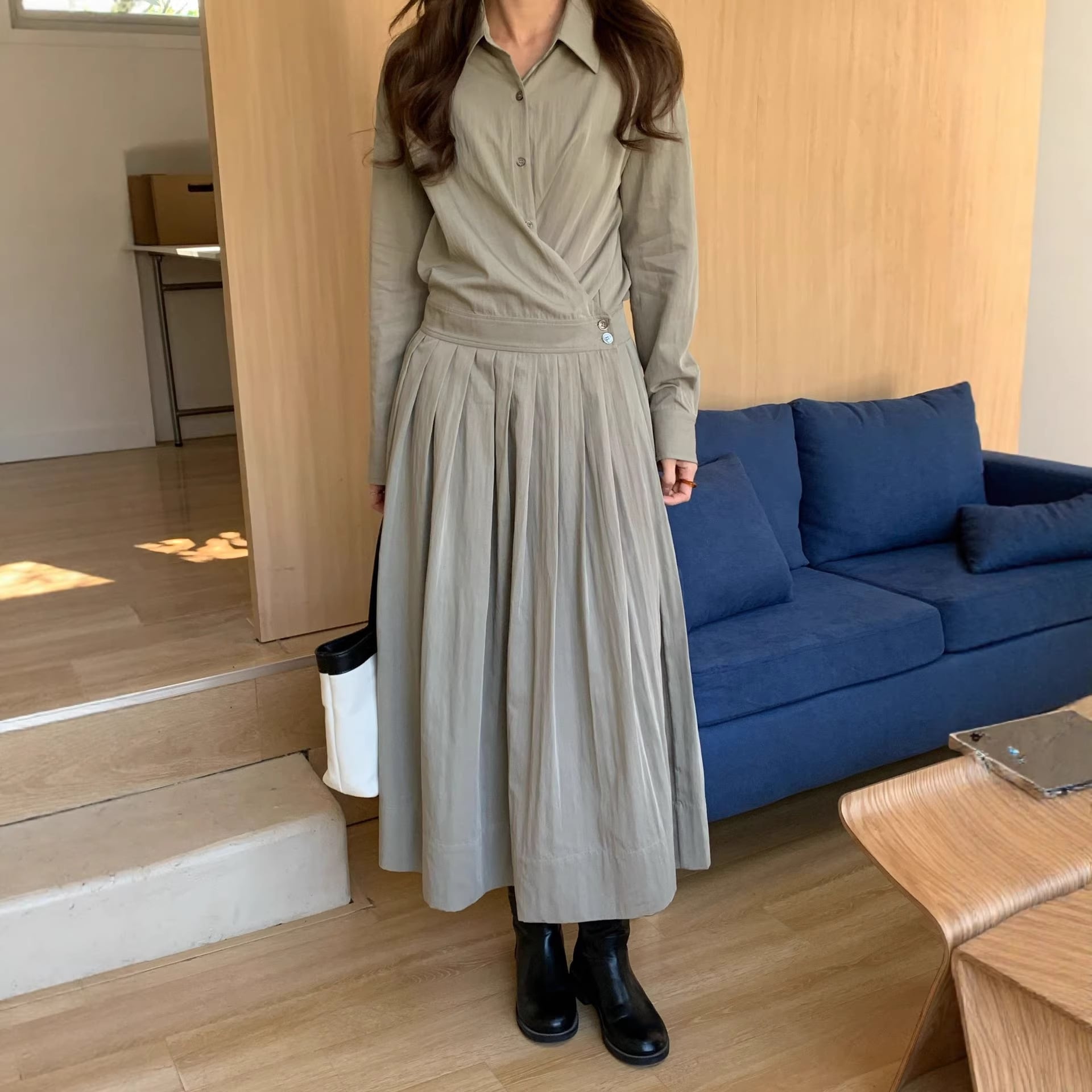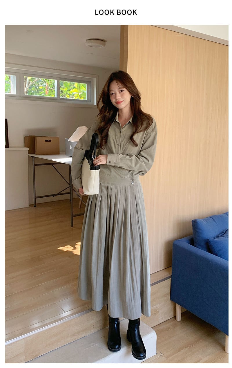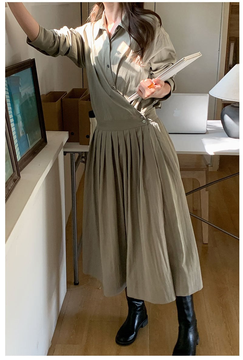 【ワンピース】 ワンピース レディース おしゃれ きれいめ 可愛い フェミニン エレガント 春 夏 秋 シャツ ワンピース 20代 30代 40代 ロング ワンピース 春秋 ワンピースドレス 韓国 ワンピース ドレス ワンピース プリーツ グリーン 緑