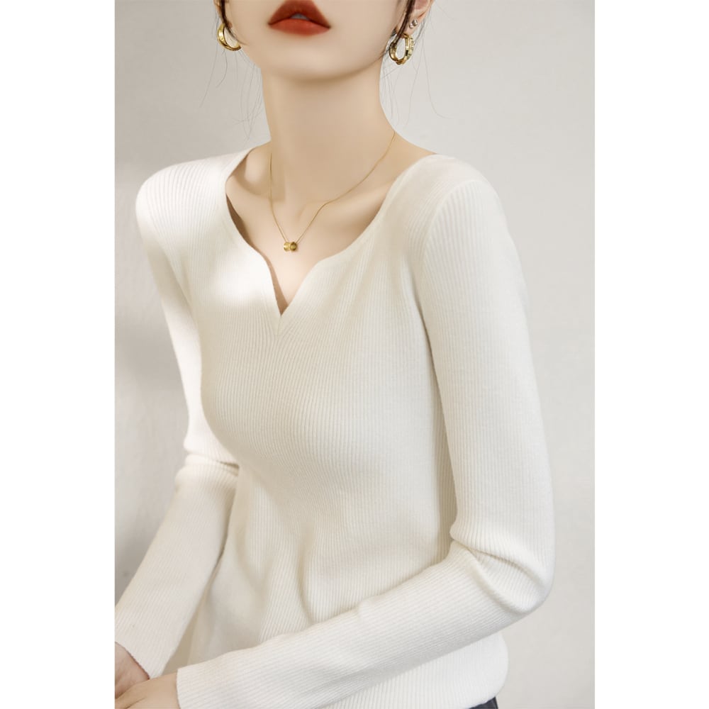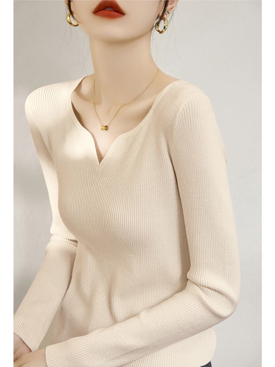 薄手のお素材でジャケットのインナーでもかさばりにくい。