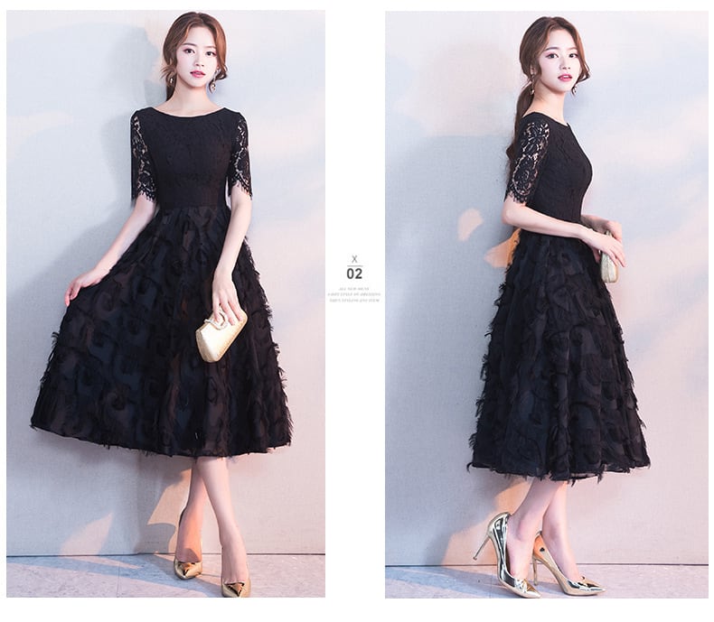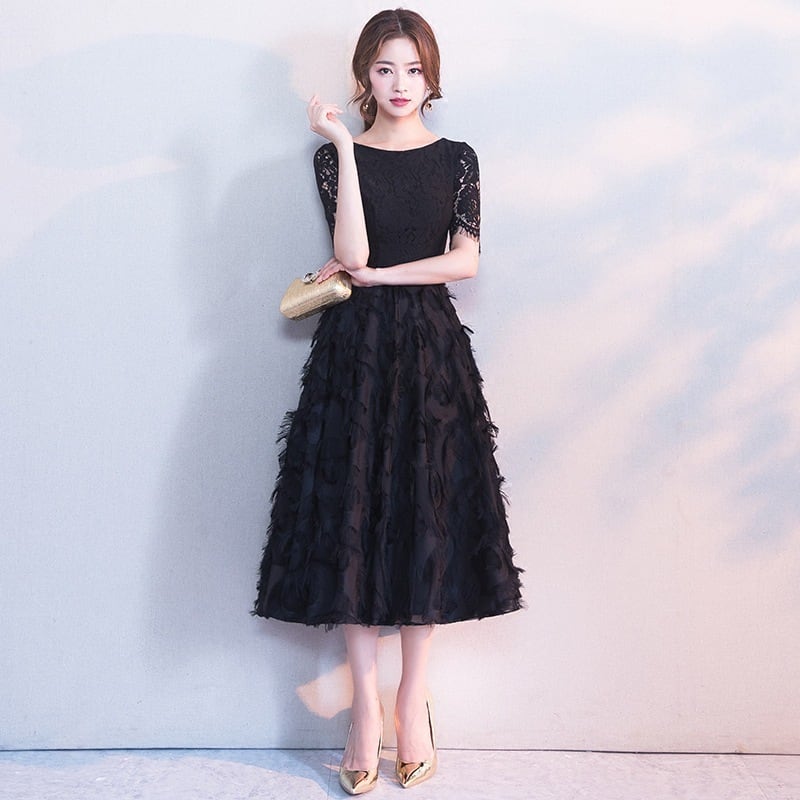 フェザータッチのスカートが大人エレガントなパーティードレス。