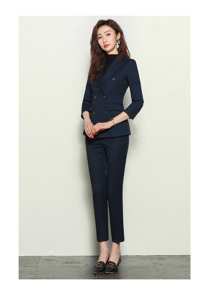 大人エレガントなジャケット+テーパードパンツのセットアップスーツ。