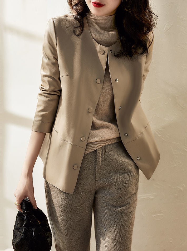 【ジャケット】大きいサイズ レザー ジャケット レディース きれいめ おしゃれ アウター ノーカラー ジャケット 20代 30代 40代 春 秋 冬 ライダース ジャケット アウター カジュアル かっこいい 大人 可愛い ベージュ ブラック 黒 S M L XL 2XL 3XL 4XL