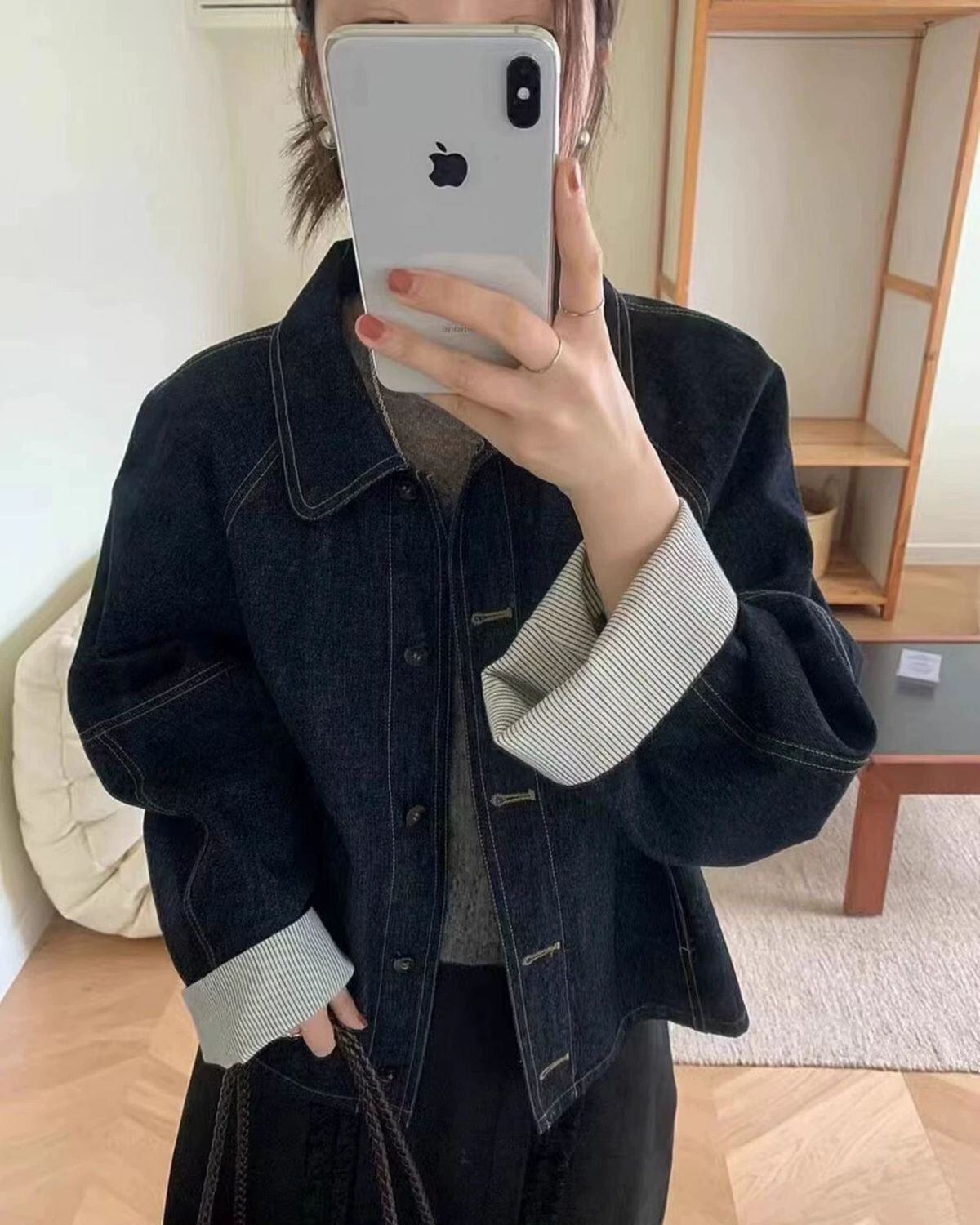 ちょこんと付いた襟が大人可愛いデニムジャケット。