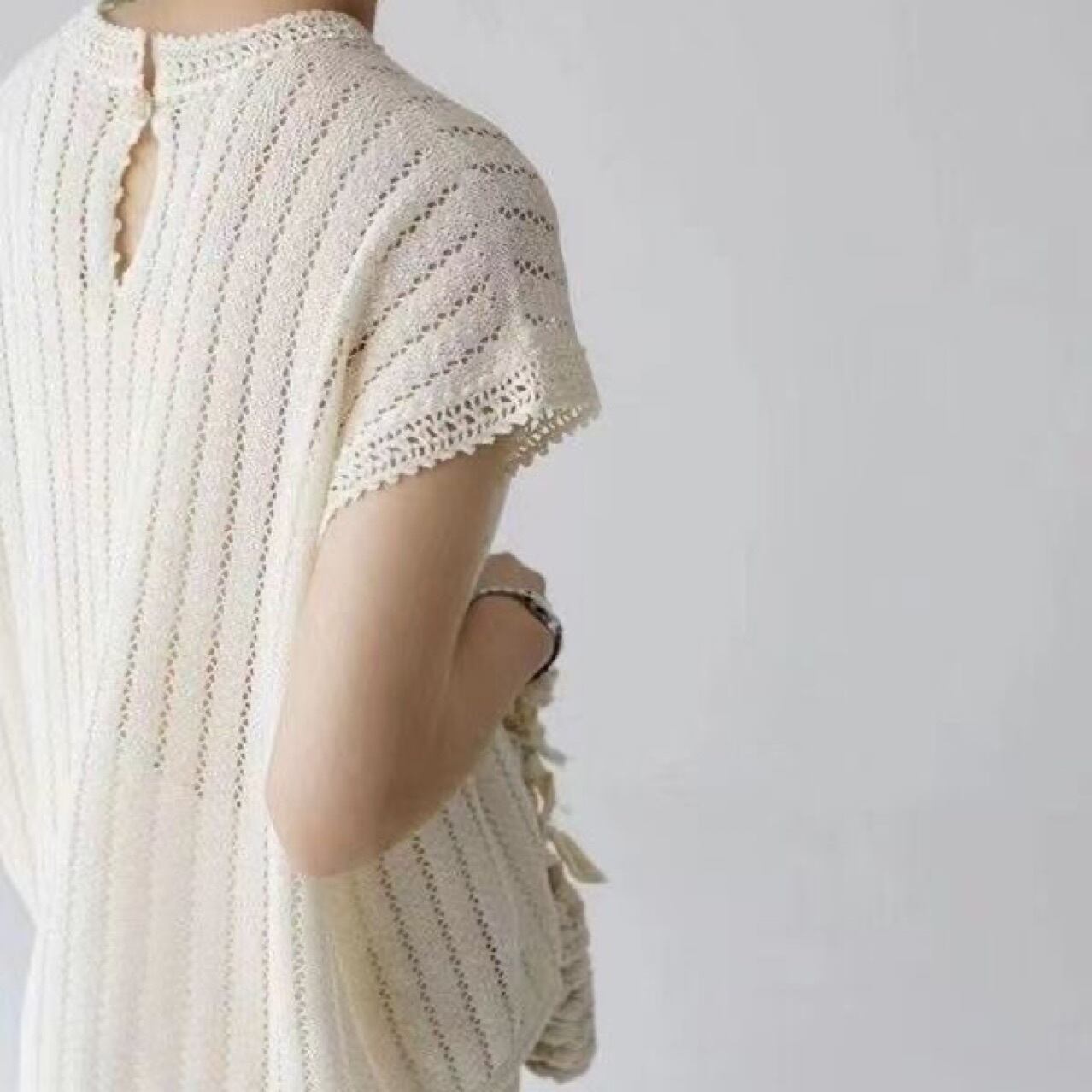 【ニット】大きいサイズ ニット セーター レディース おしゃれ かわいい 韓国 トップス 20代 30代 40代 春 夏 秋 レディース ニット 半袖 ホワイト 白 ブルー 青 M L XL 2XL