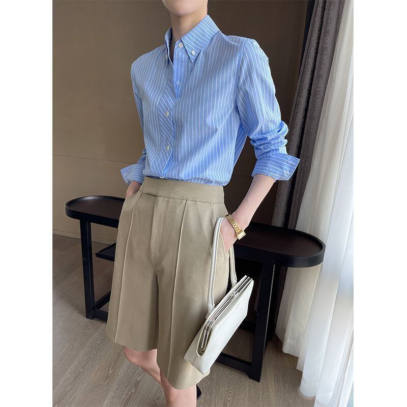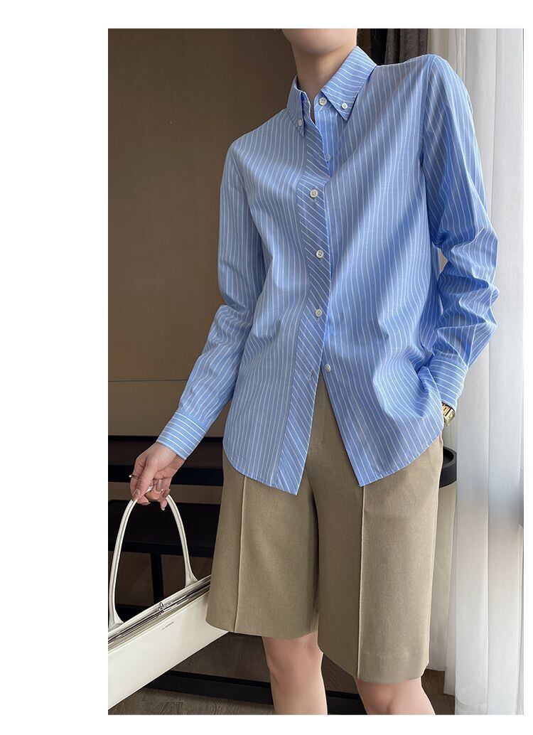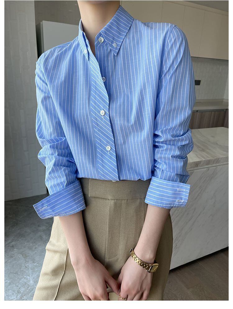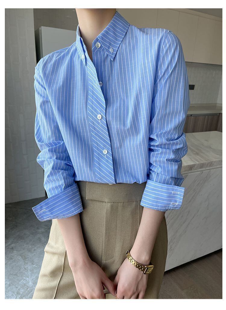【シャツ】 大きいサイズ シャツ レディース 大人 可愛い トップス シャツ ブラウス 韓国 ブラウス 春 夏 秋 冬 20代 30代 40代 シンプル オフィス レディース フォーマル 体型カバー きれいめ ストライプ ネイビー S M L XL 2XL