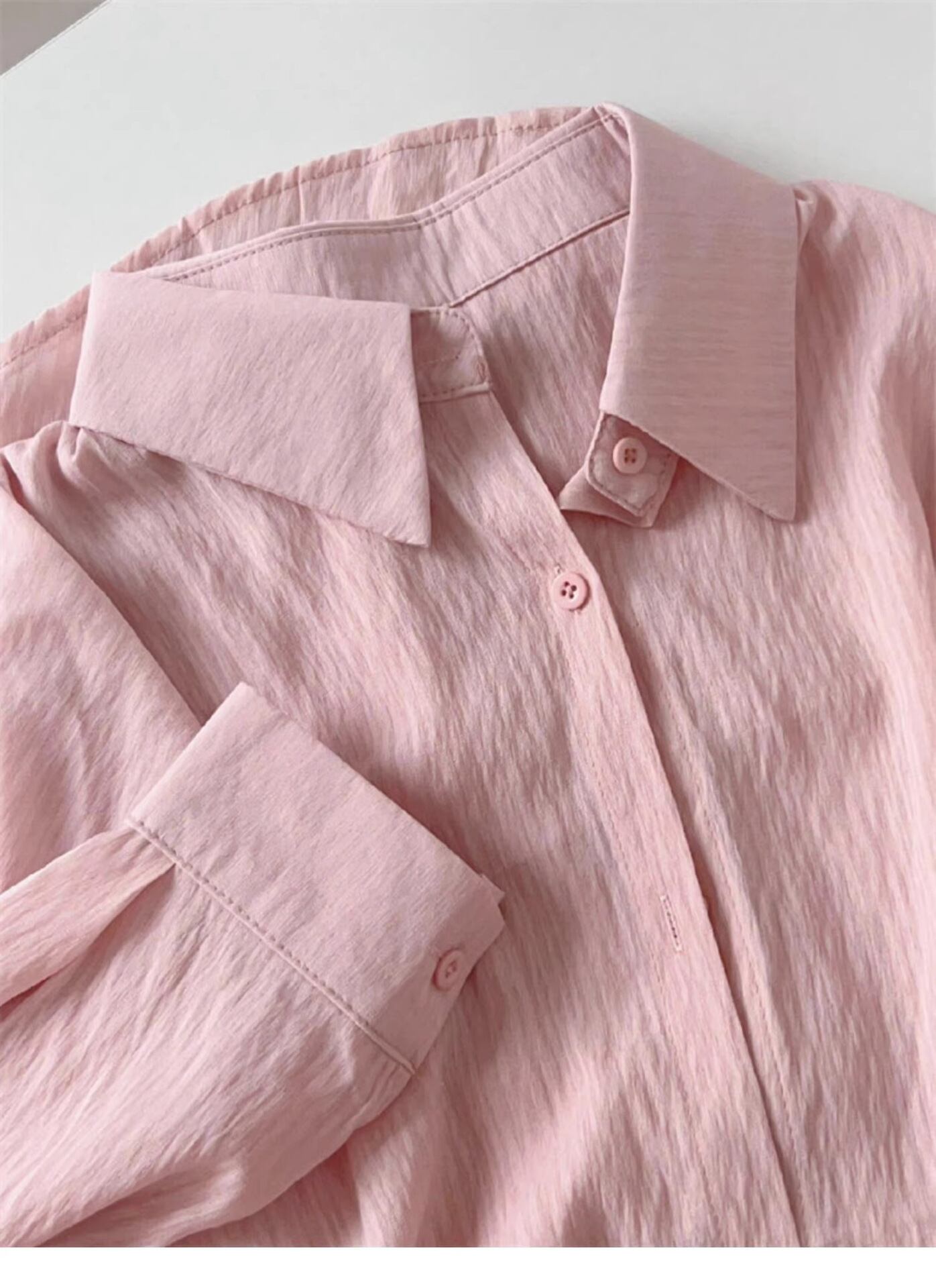 【シャツ】大きいサイズ シャツ レディース 大人 可愛い トップス シアー 透け感 シャツ ブラウス 韓国 ブラウス 春 夏 秋 冬 20代 30代 40代 シンプル オフィス レディース フォーマル 体型カバー きれいめ ブルー 青 ホワイト 白 ピンク S M L XL 2XL