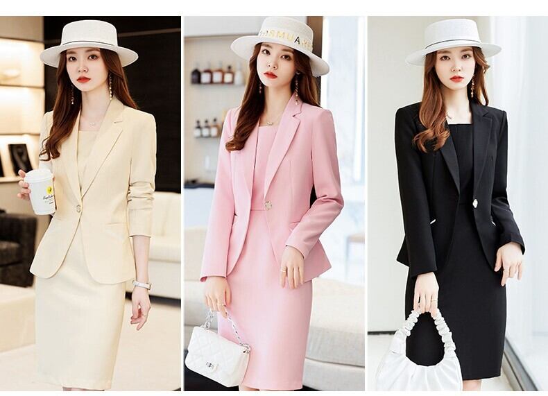 大人エレガントなジャケット+ワンピースのセットアップスーツ。