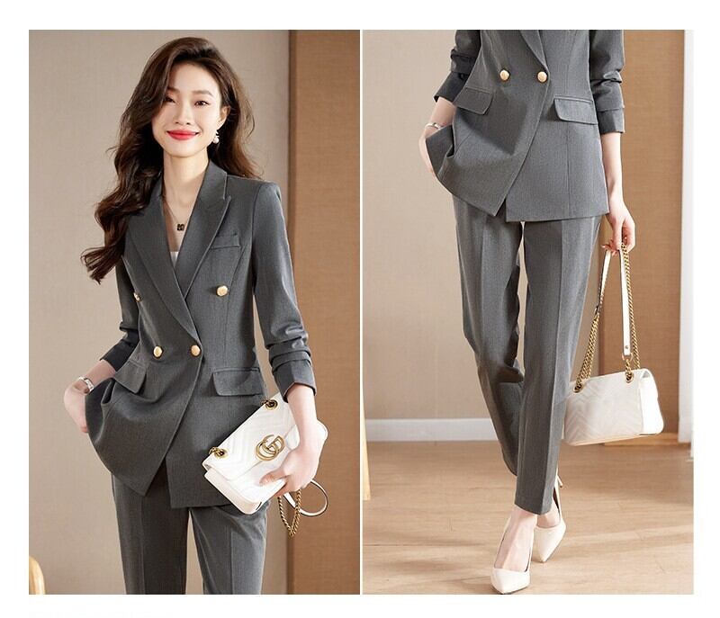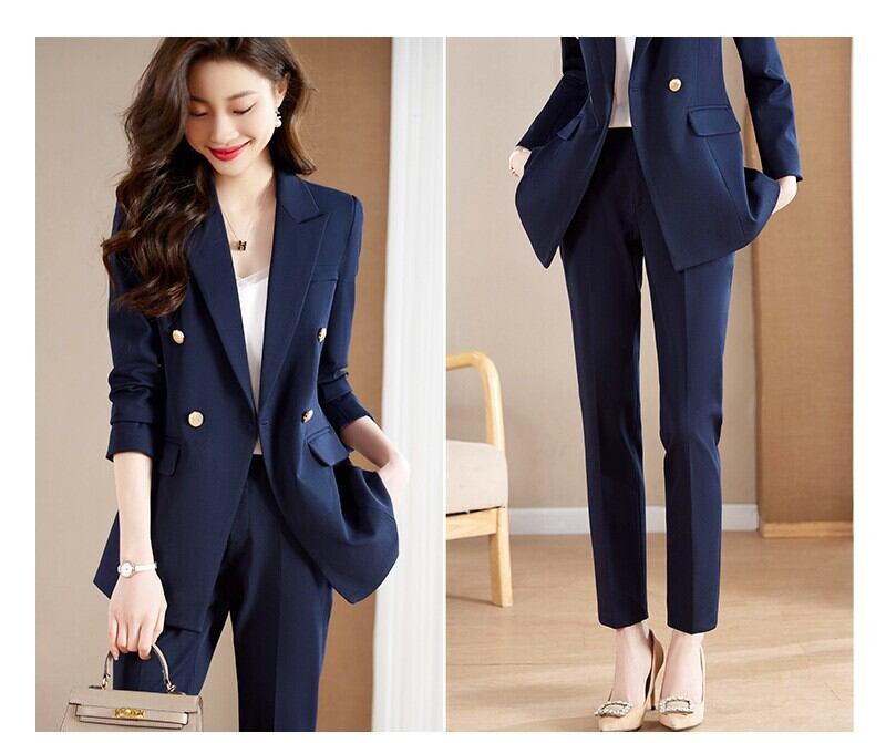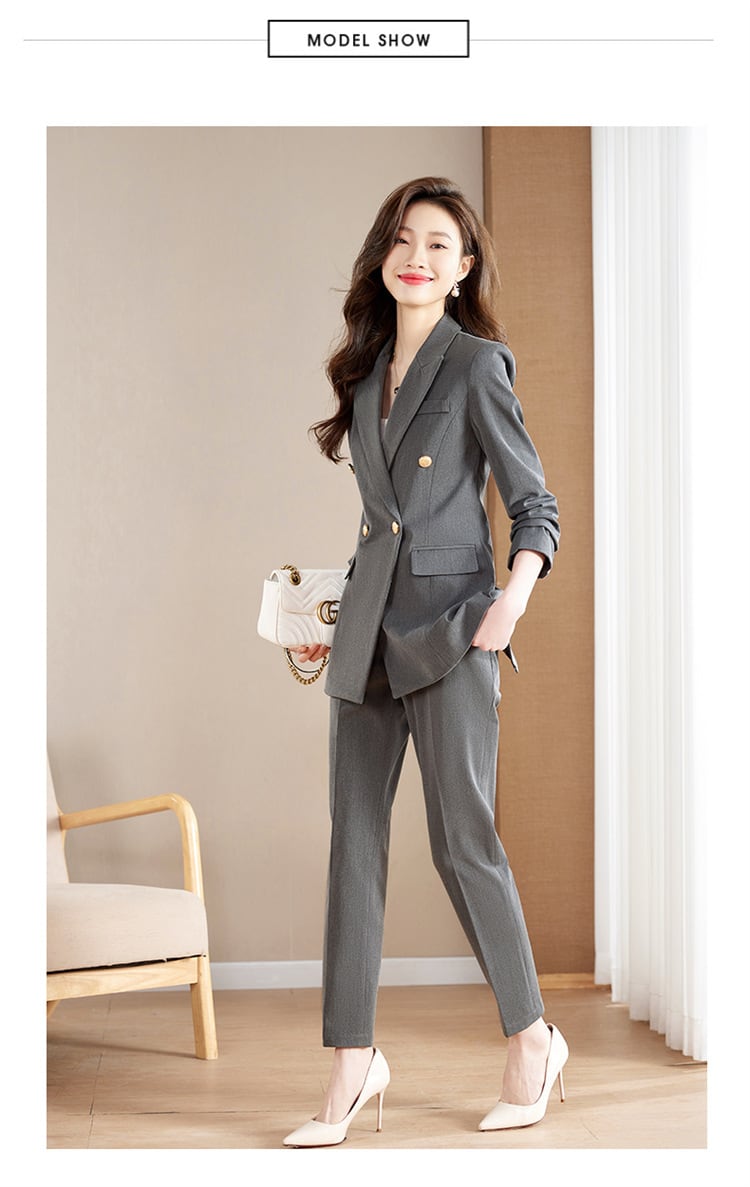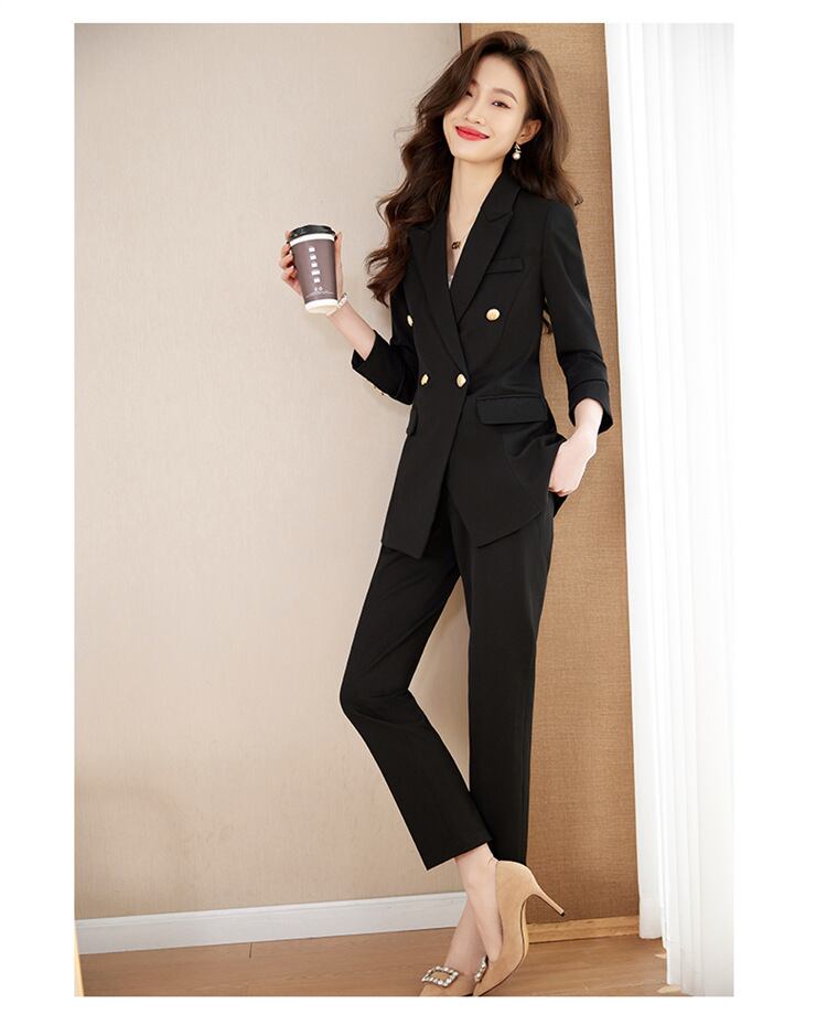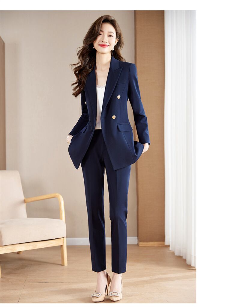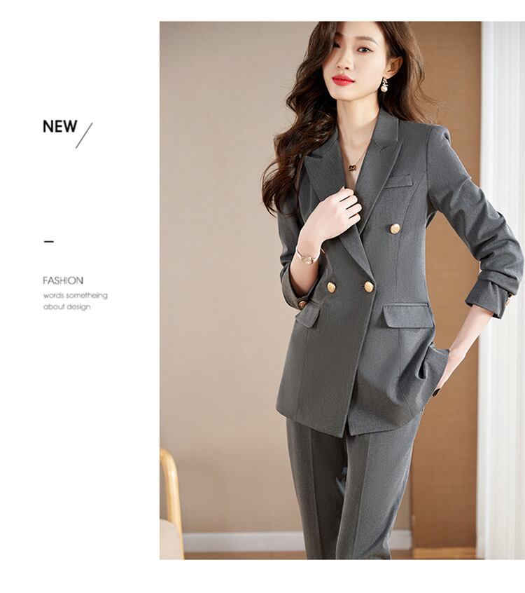 ダブルブレストでウエストまわりもたつきなく着用いただけます。
