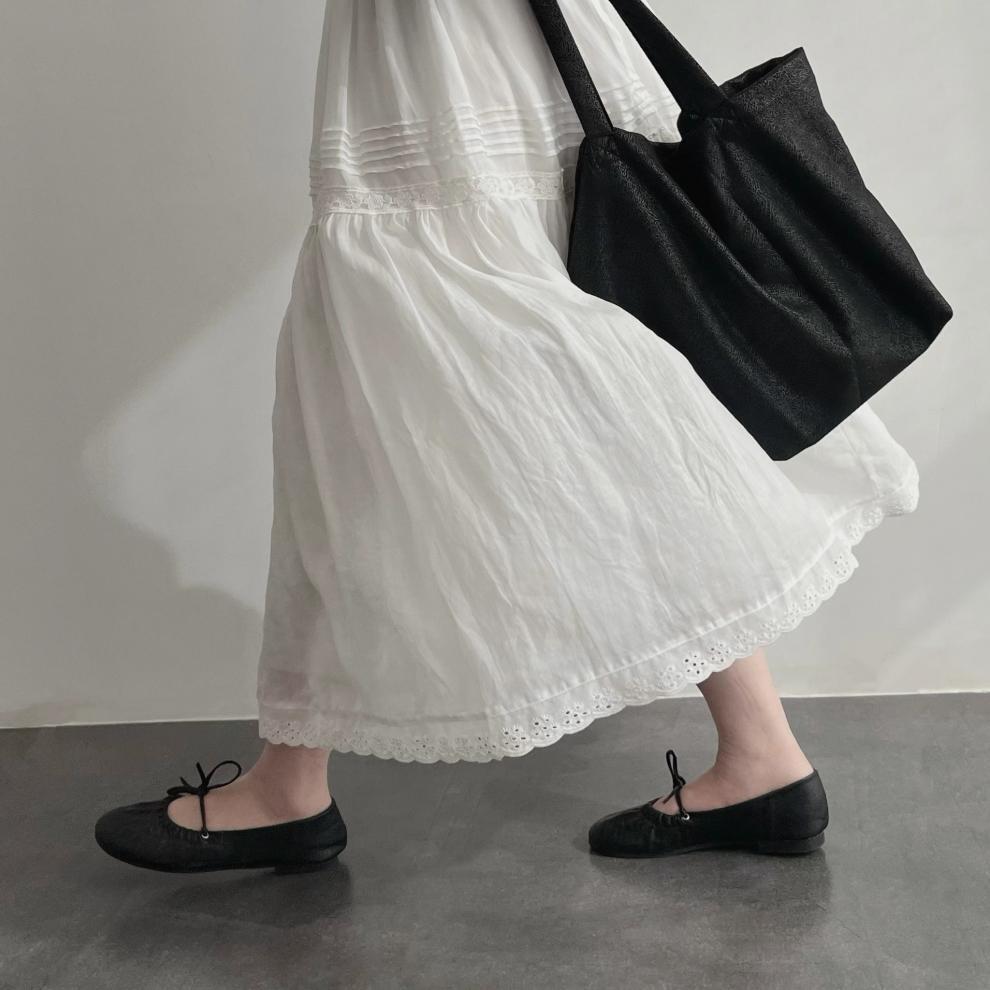 歩くたびに揺れ動く生地感で大人の可憐さをプラス。