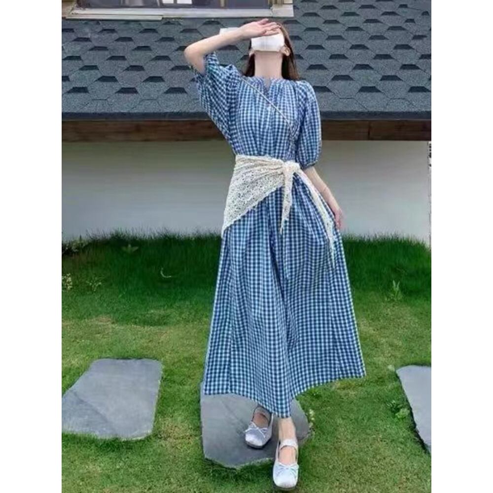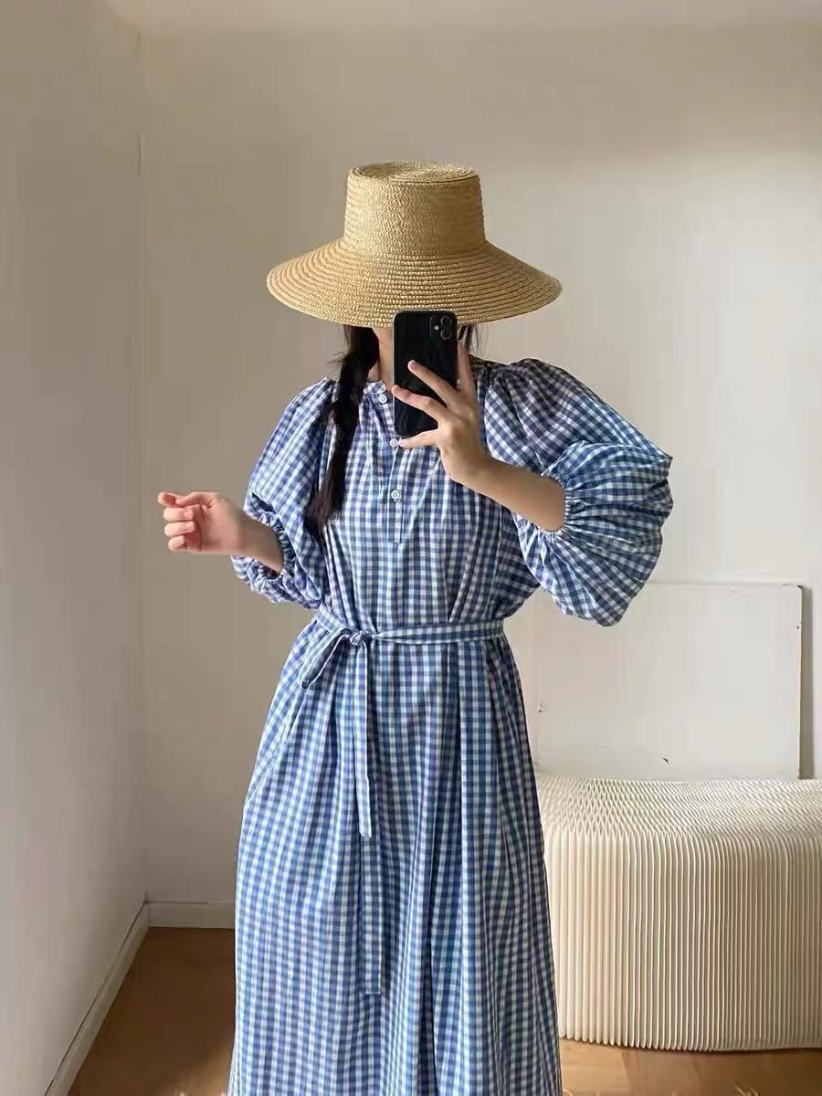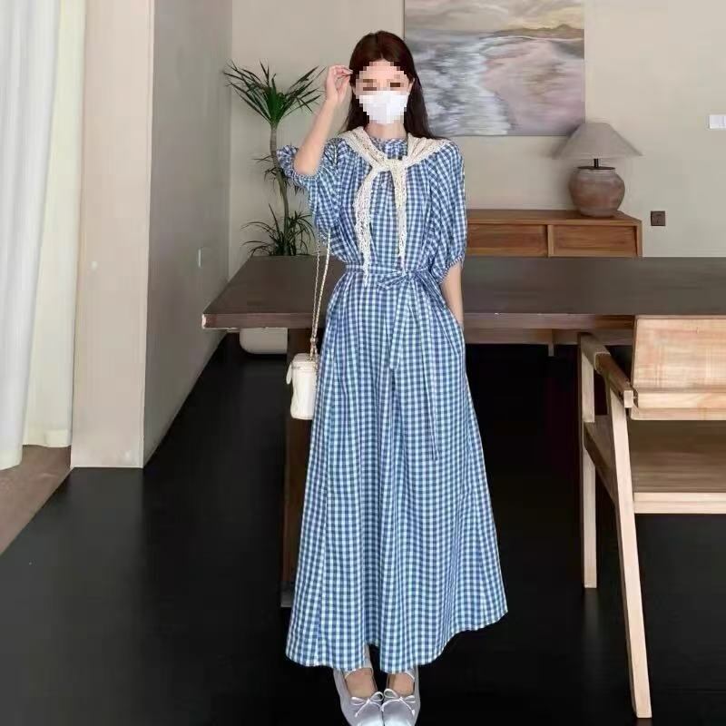【ワンピース】 ワンピース レディース おしゃれ きれいめ 可愛い フェミニン エレガント 春 夏 秋 20代 30代 40代 ロング ワンピース 春夏 ワンピースドレス 韓国 ワンピース ドレス ワンピース ギンガムチェック 青