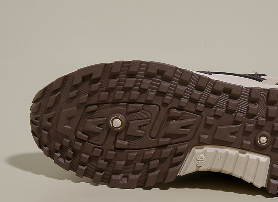 大人カジュアルなバイカラーのスニーカー。