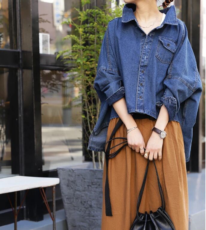 大人可愛いオーバーサイズのシャツ風デニムジャケット。