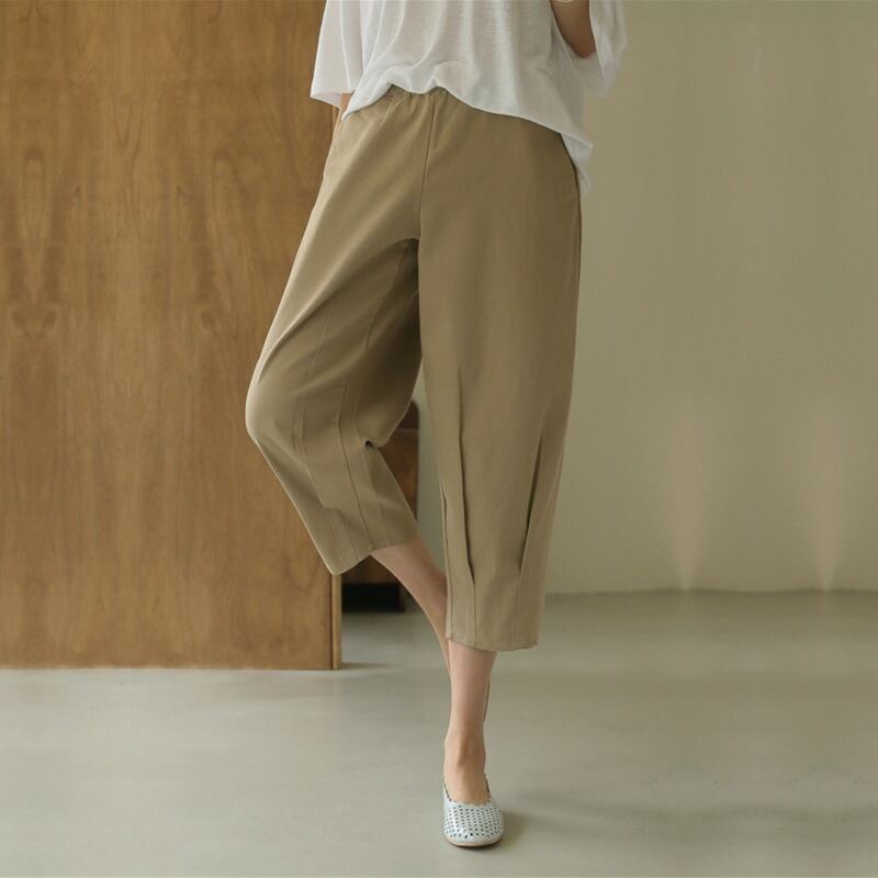 伸縮性ウエストのゴム仕様で着心地も快適。