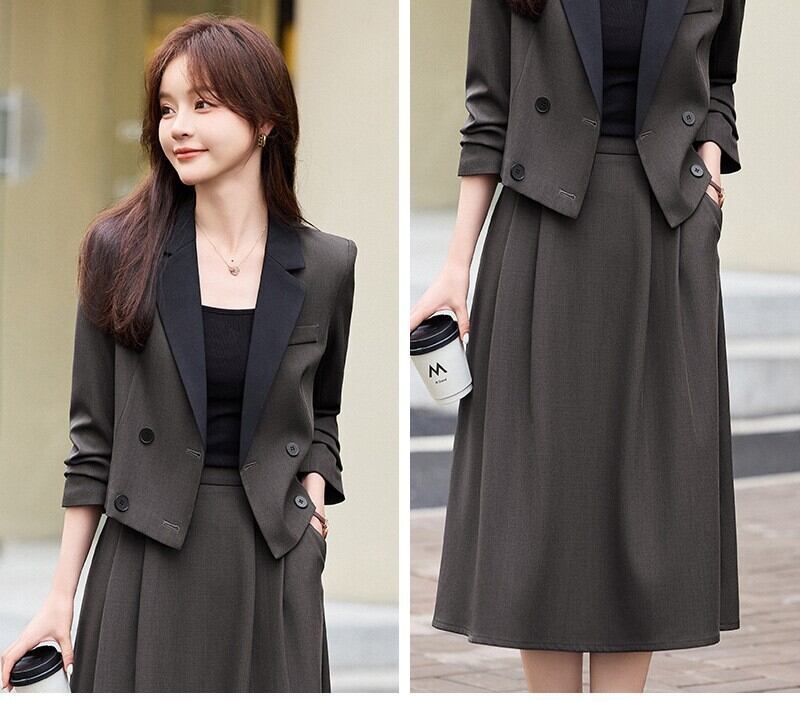 大人エレガントなジャケット+テーパードパンツ・スカートのセットアップスーツ。