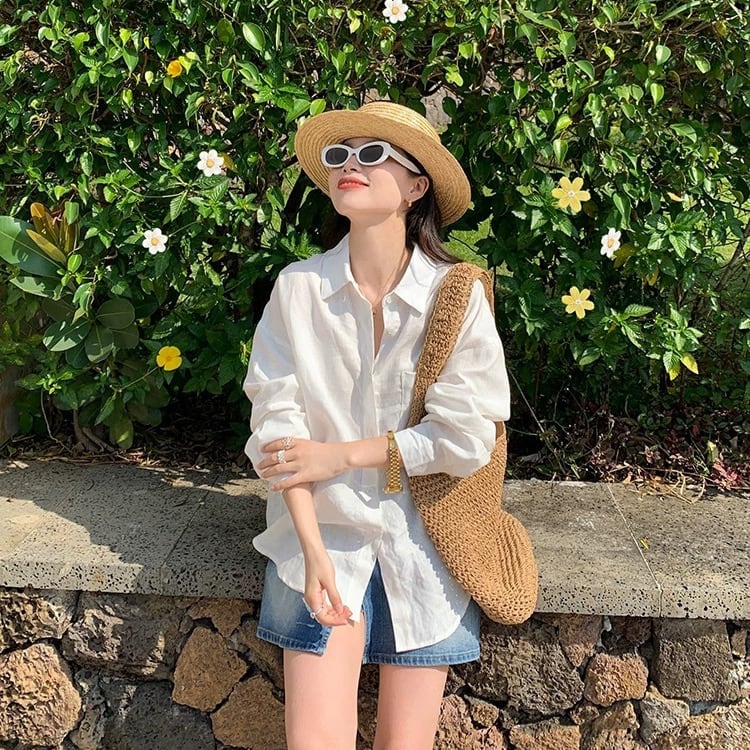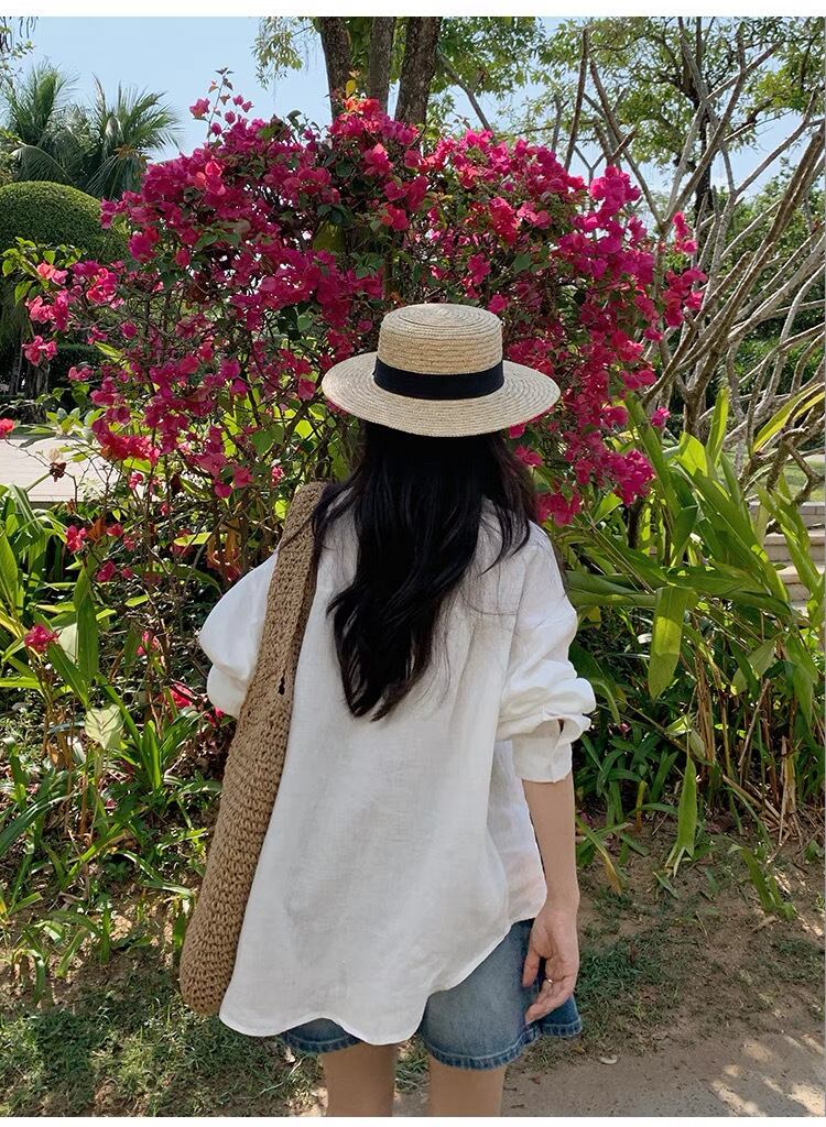 リネン素材で着心地よく日焼け止めにもなり羽織りものとしても。