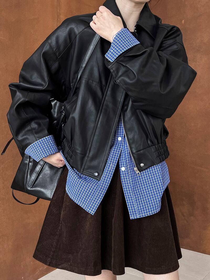 きれいめに着こなせる大人エレガントなフェイクレザージャケット。