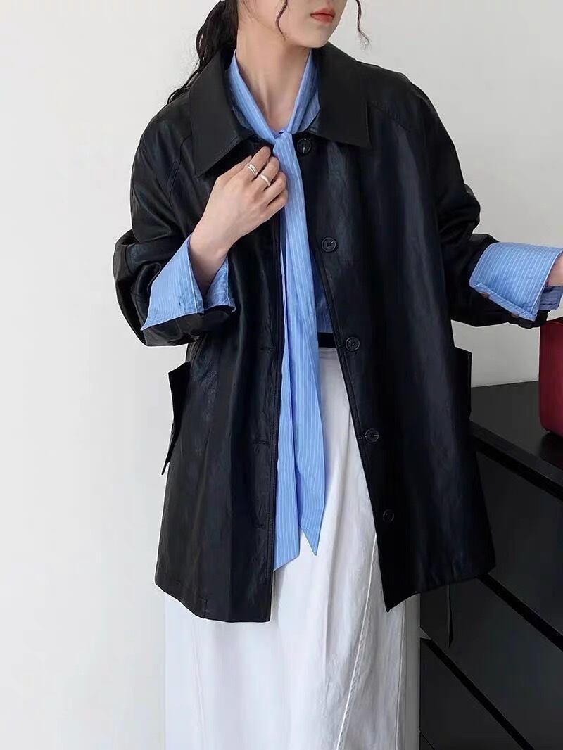 きれいめに着こなせる大人エレガントなフェイクレザージャケット。