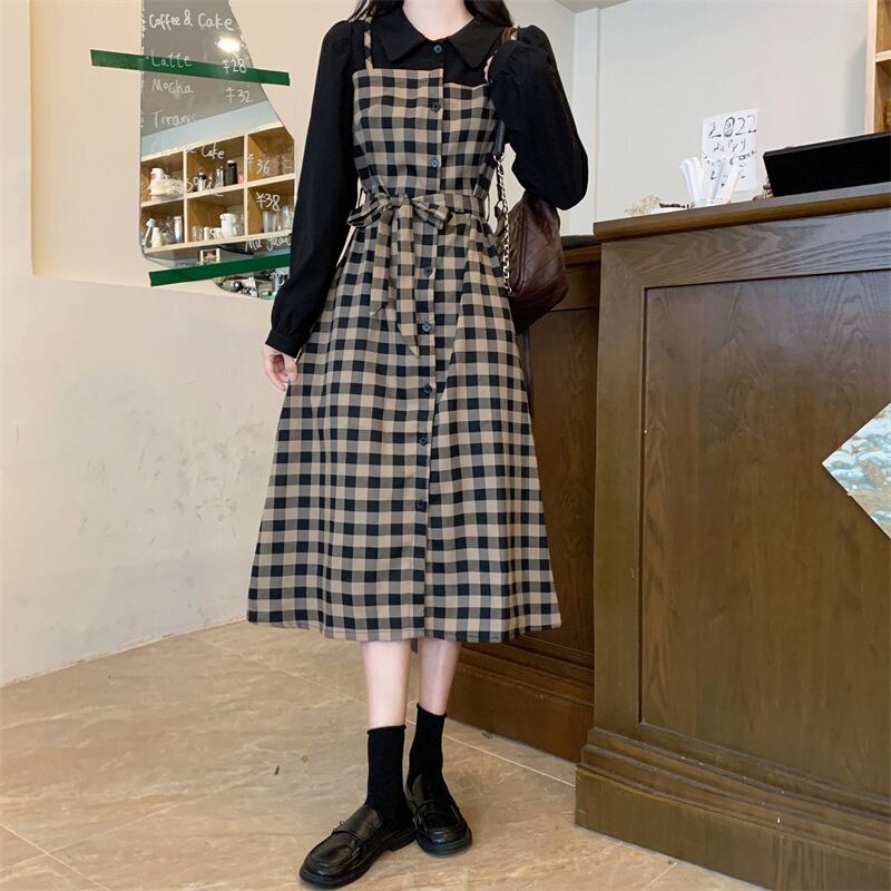 【ワンピース】大きいサイズ ワンピース レディース おしゃれ きれいめ 可愛い フェミニン エレガント 春 夏 秋 20代 30代 40代 ミモレ ワンピース 春夏 ワンピースドレス 韓国 ワンピース ドレス ワンピース ギンガムチェック カーキ S M L XL 2XL