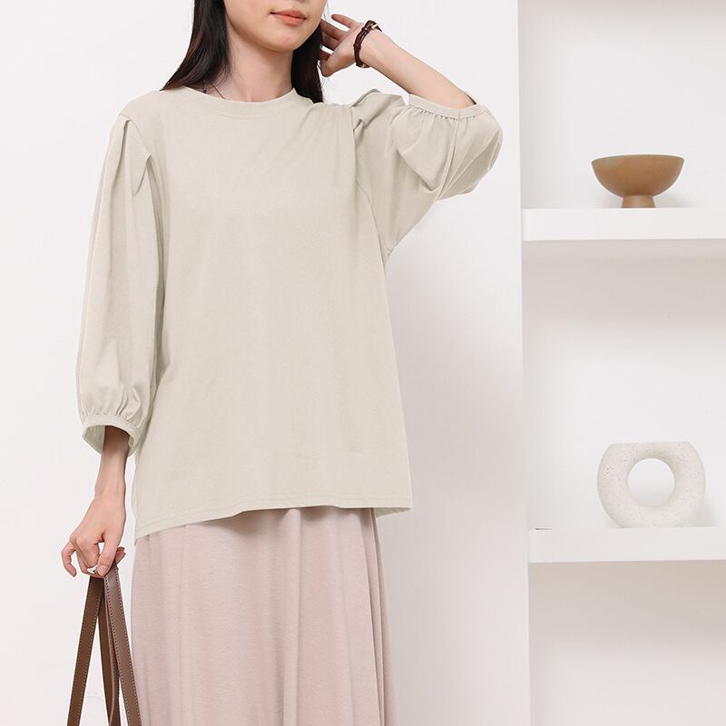 大人可愛いシンプルな七分袖のカットソー。
