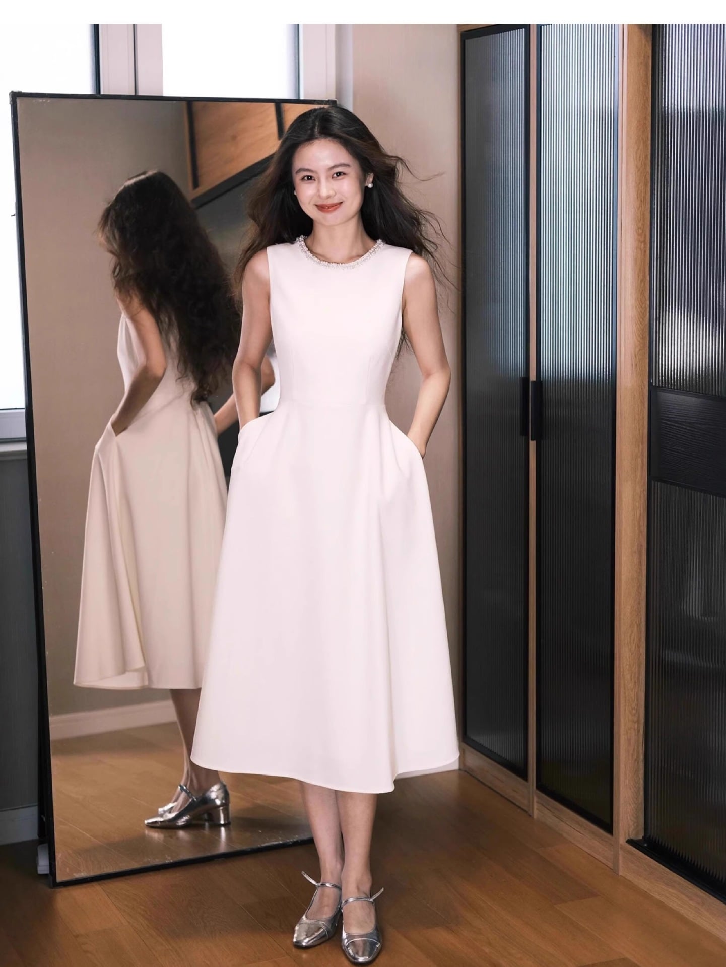 大人可愛いフレアシルエットのパーティードレス。