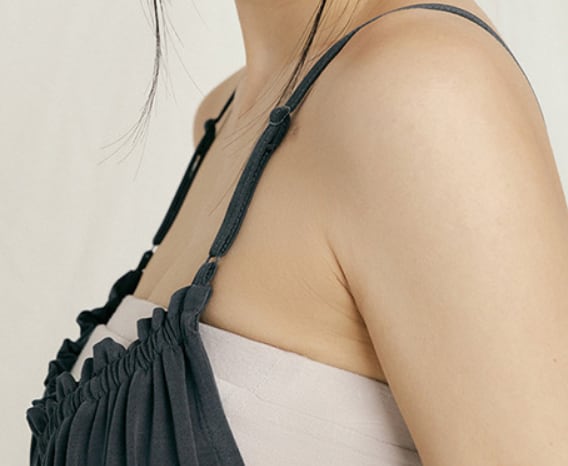 バックが広く開いているのでtシャツやカットソーあわせで。