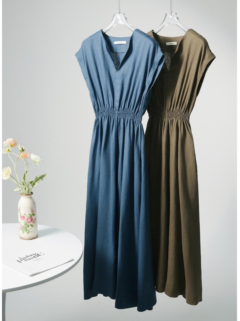 ウエストギャザーでウエストラインをきゅっと引き締める。