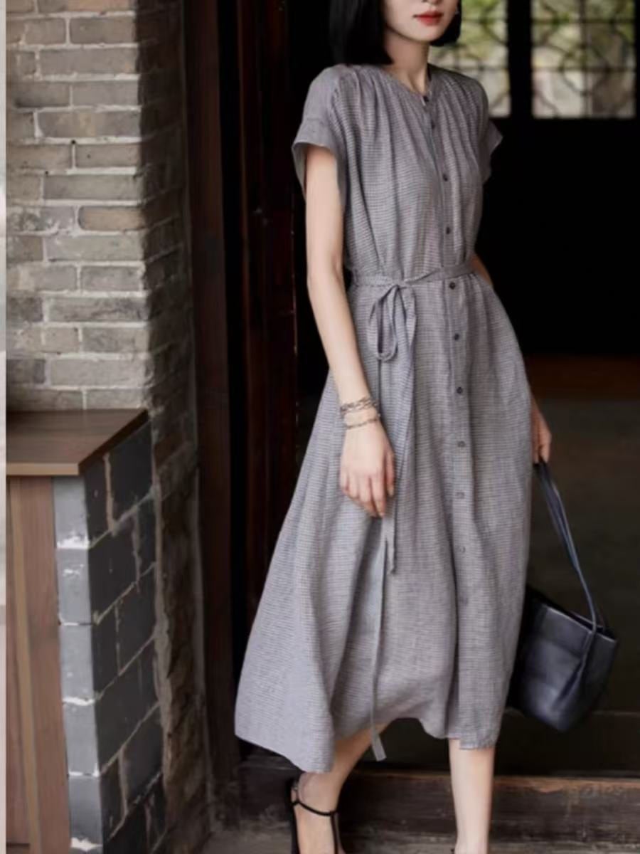 ウエストリボンでウエストラインをきゅっと引き締める。