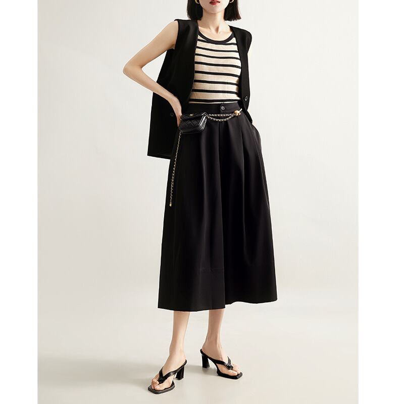 落ち感がエレガントなワイドパンツ。