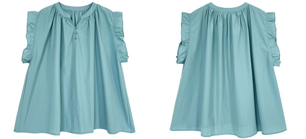 スモック風デザインで身幅にも余裕あり体型カバーにも。
