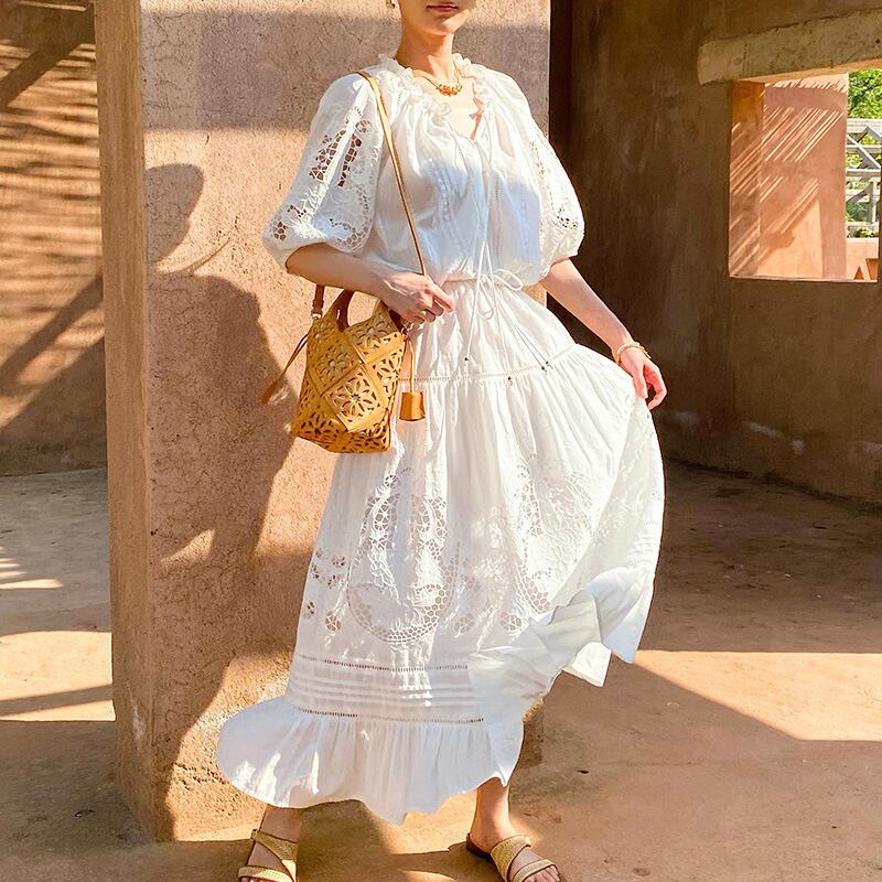 大人エレガントなレースブラウス+ティアードスカートのセットアップ。