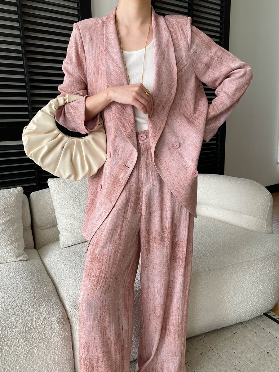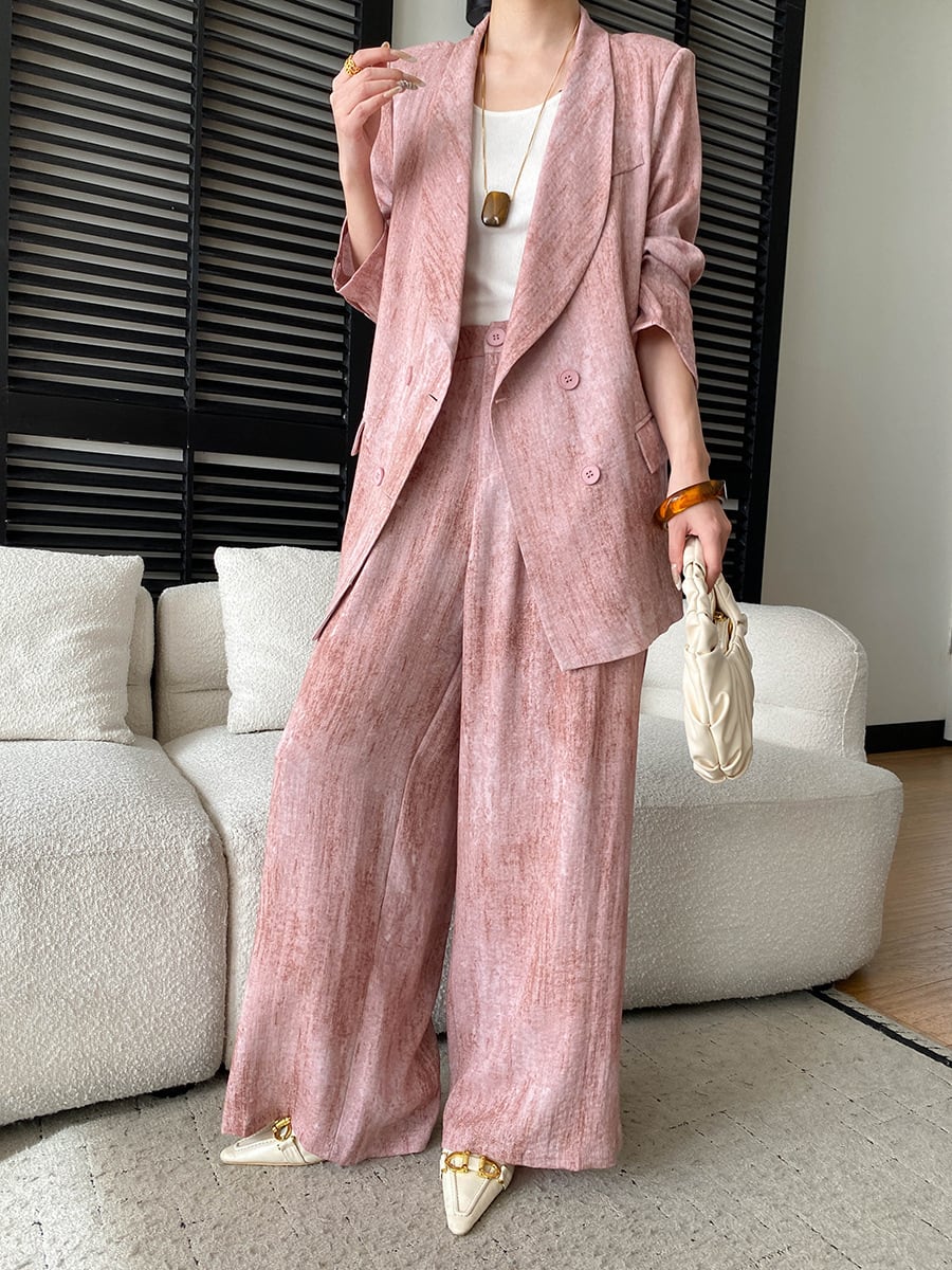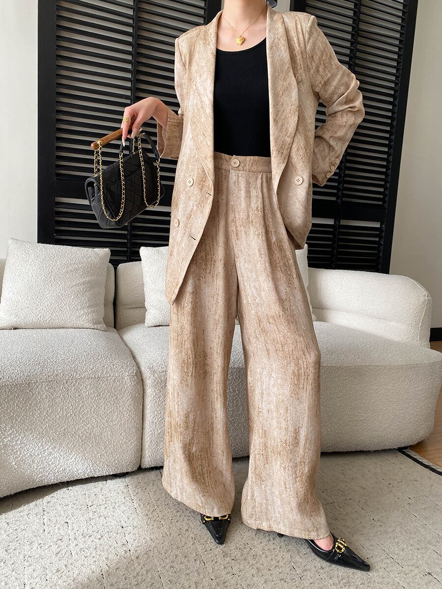 大人エレガントなジャケット+ワイドパンツのセットアップスーツ。