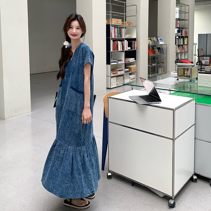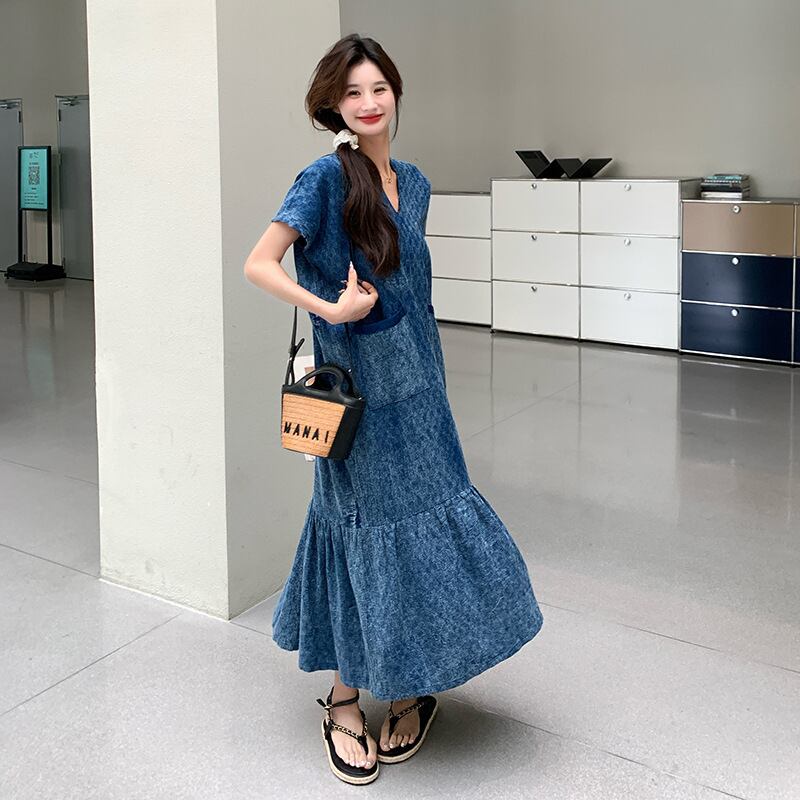 【ワンピース】 レディース おしゃれ きれいめ 可愛い フェミニン エレガント 春 夏 秋 20代 30代 40代 50代 ロング ワンピース 春夏 ワンピースドレス 韓国 ワンピース ドレス ワンピース デニム ブルー 青S M L