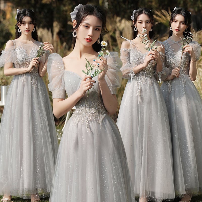 【パーティードレス】大きいサイズ 小さいサイズ パーティードレス かっこいい 結婚式 ブライズメイド お呼ばれドレス 結婚式のお呼ばれ ワンピース エレガント シンプル ロング ワンピース 20代 30代 40代 成人式 同窓会 卒業式 入学式 卒園式 入園式 謝恩会 袖あり 体型カバー フォーマルドレス 結婚式フォーマル お呼ばれ 二次会 フォーマルワンピース おしゃれ グレー XS S M L XL 2XL 3XL