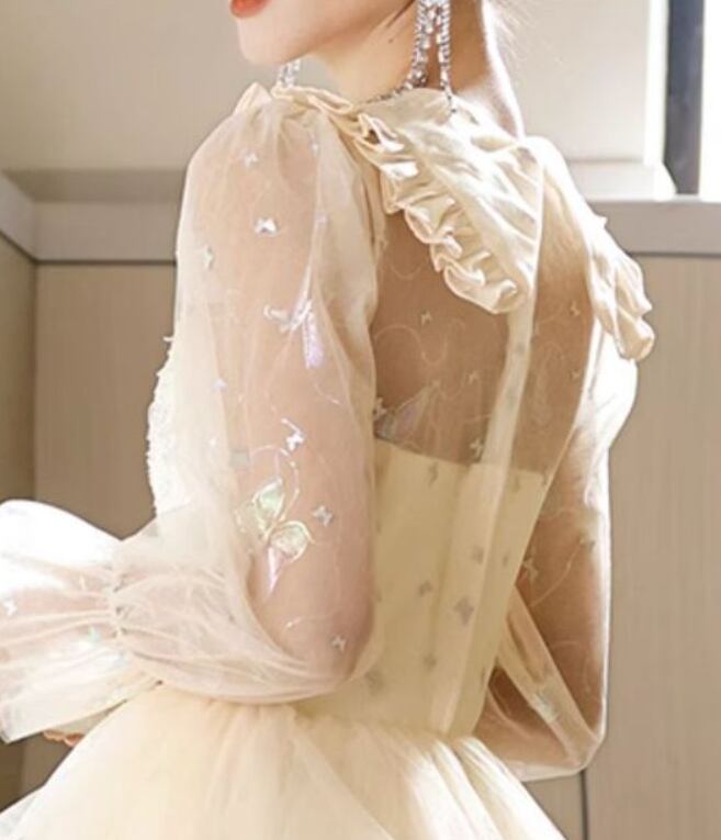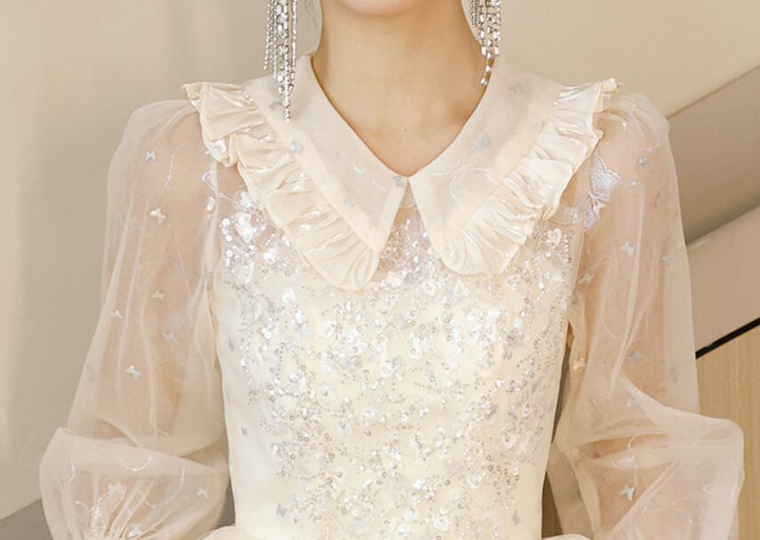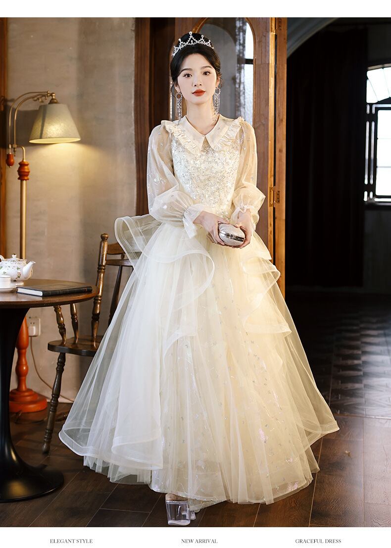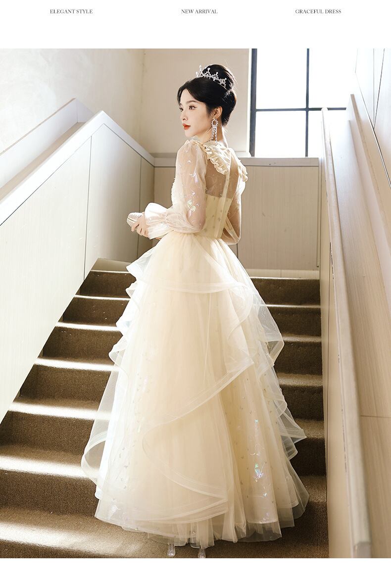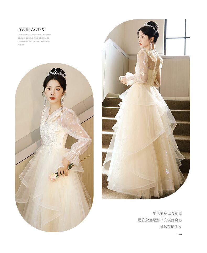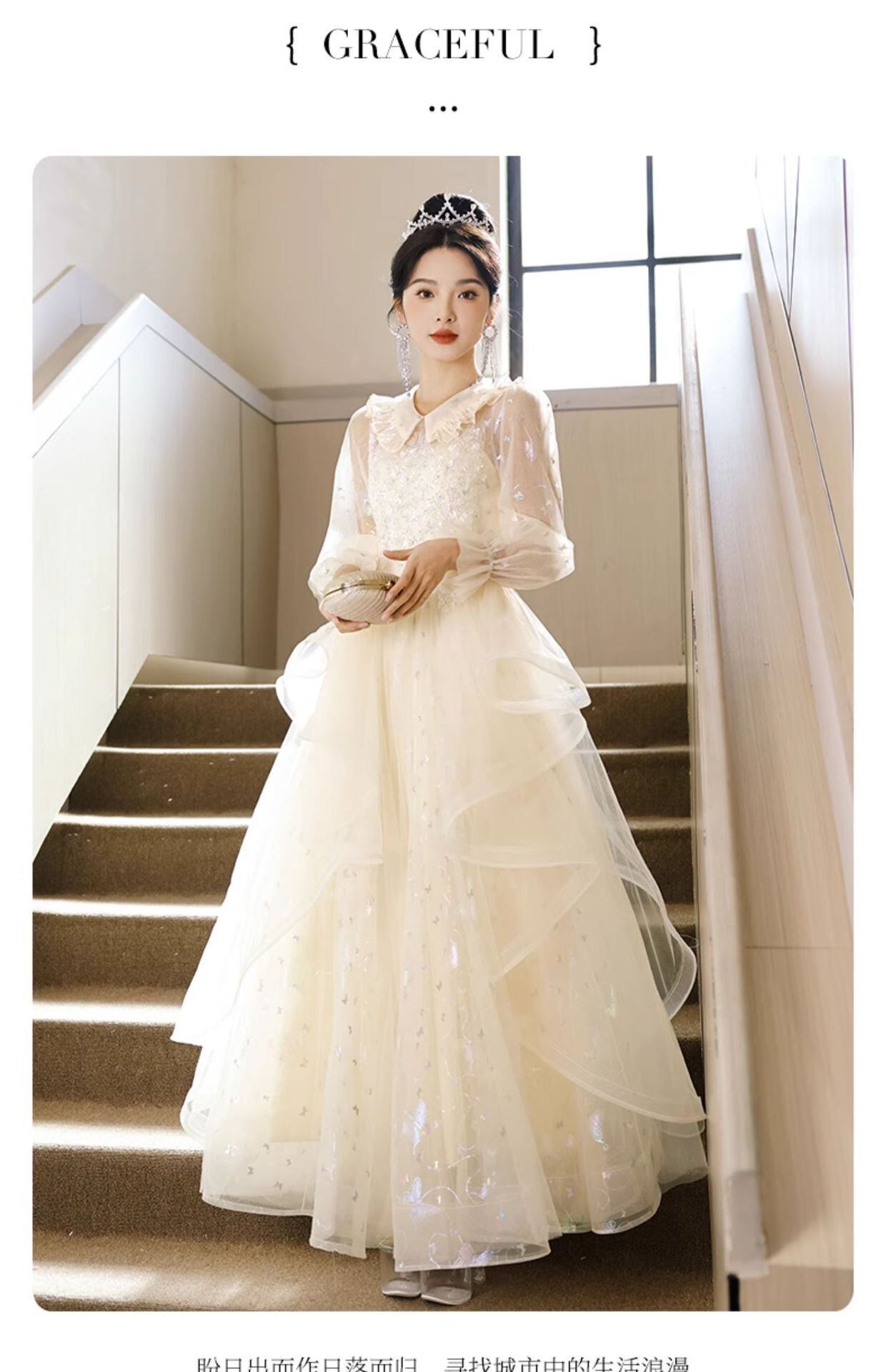 【カラードレス】大きいサイズ 小さいサイズ カラードレス シャンパン 結婚式 挙式 袖あり ウェディングドレス 20代 30代 40代 シンプル フォーマルドレス ロング カジュアルウェディング フォトウェディング ドレス 前撮り 後撮り 結婚式写真 ナチュラル ウェディング ガーデンウェディング 少人数ウェディング 二次会 お色直し レストランウェディング リゾートウェディング