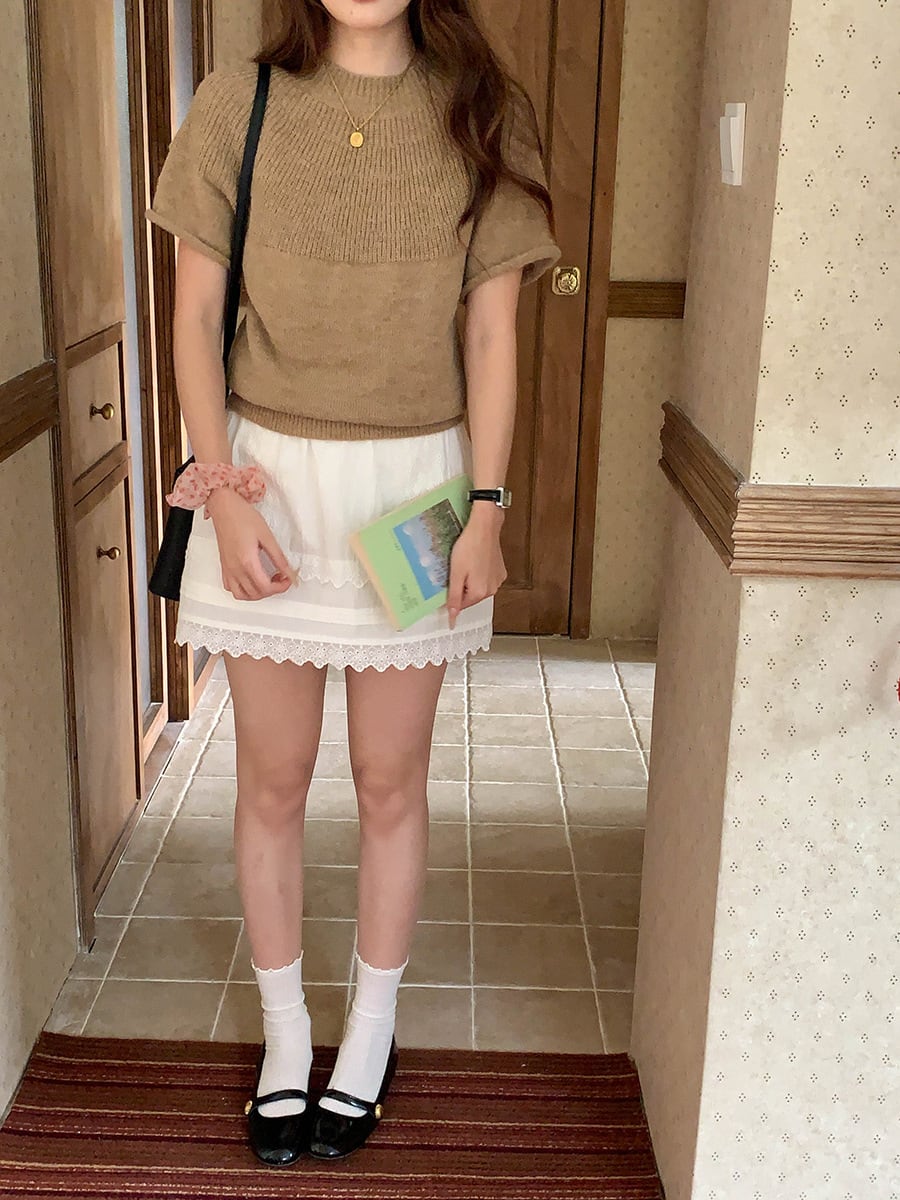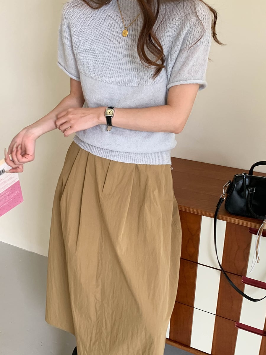 大人可愛いスタンドアップカラーのニットセーター。