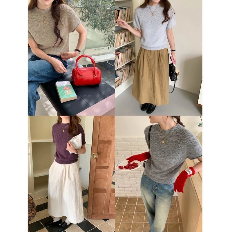 【ニット】 ニット セーター レディース おしゃれ かわいい 韓国 トップス 20代 30代 40代 50代 春 夏 秋 レディース ニット ピンク オートミール ホワイト 白 パープル 紫 ブラック 黒 ライトグレー ライトブルー 青 カーキ