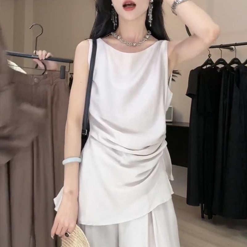 ウエストのドレープ感でさりげなく腰まわりをカバー。