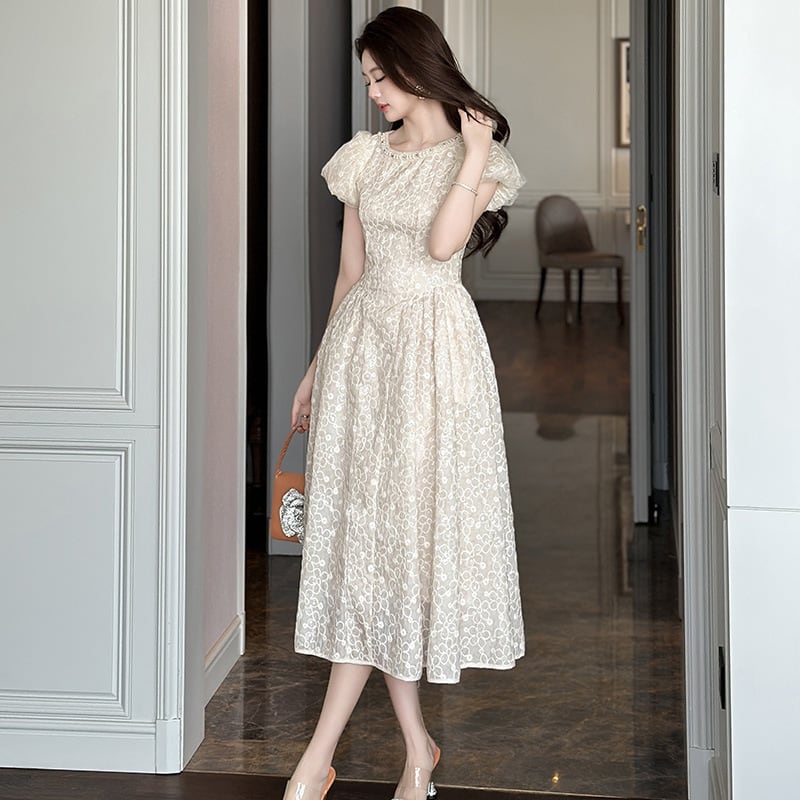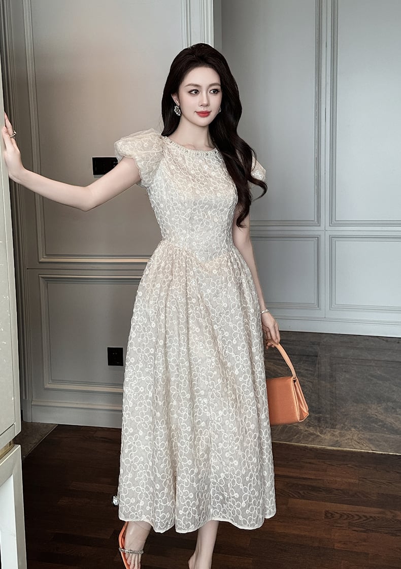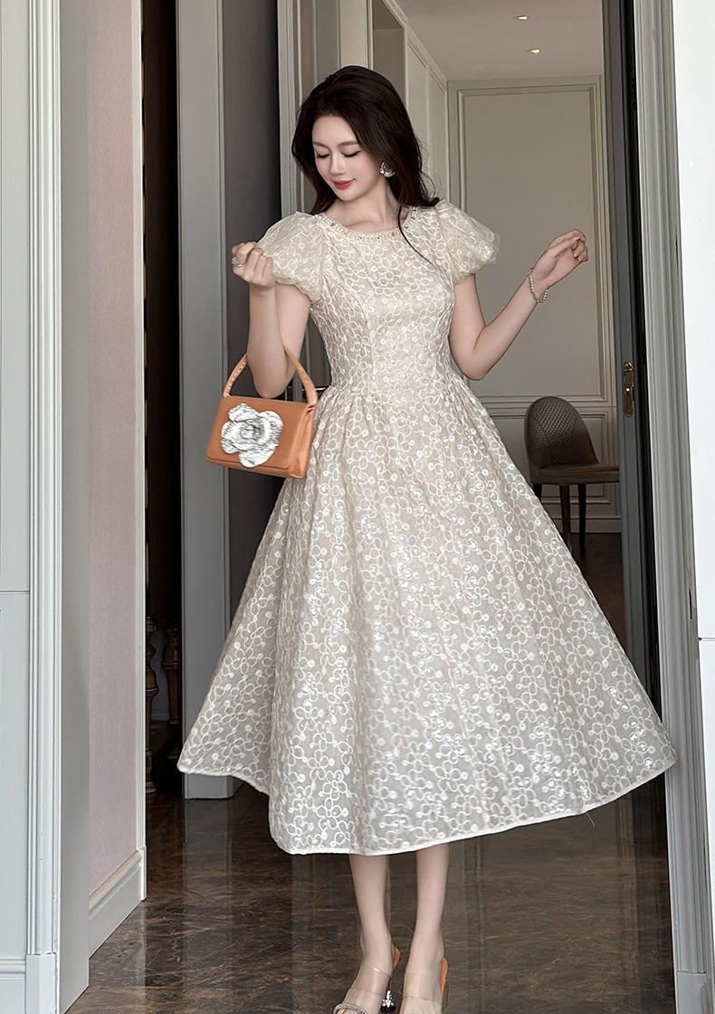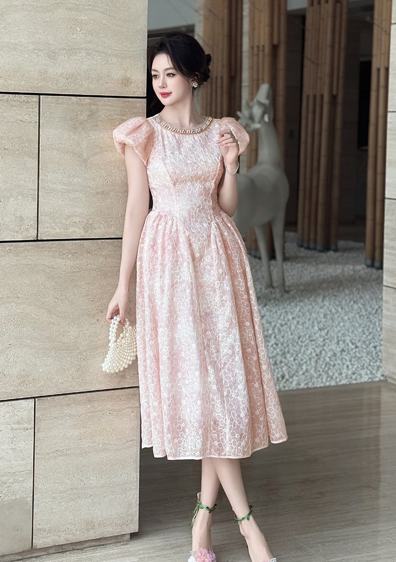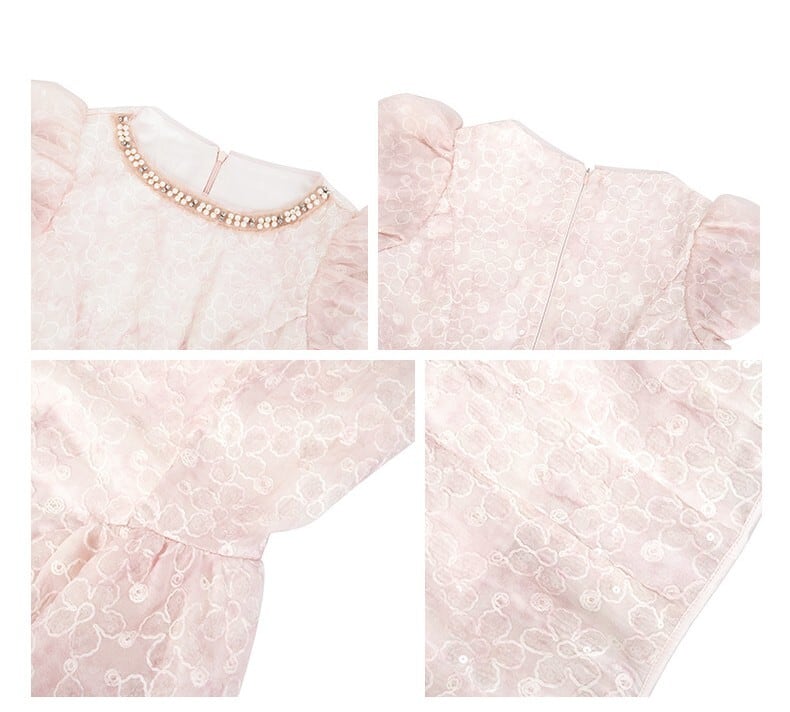 全身にほどこされたスパンコールとお花刺繍が可愛らしいパーティードレス。