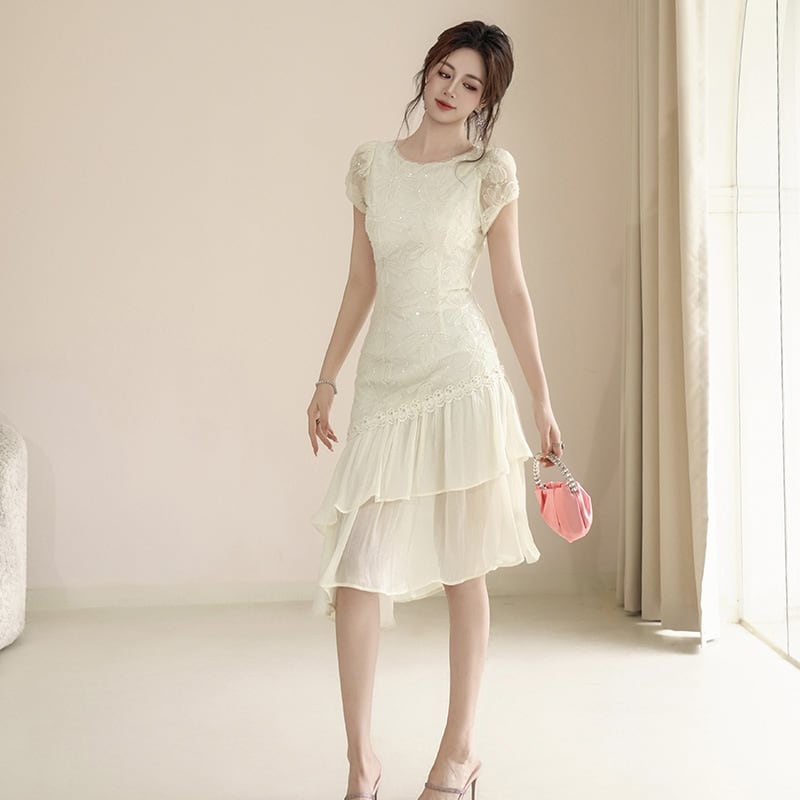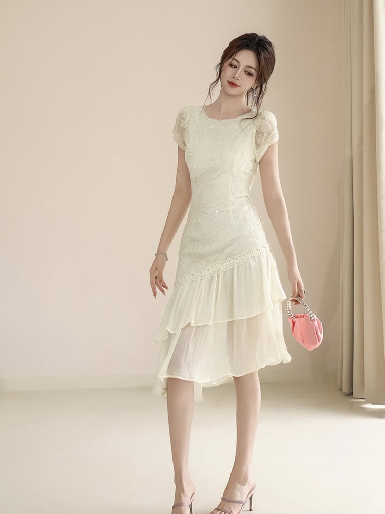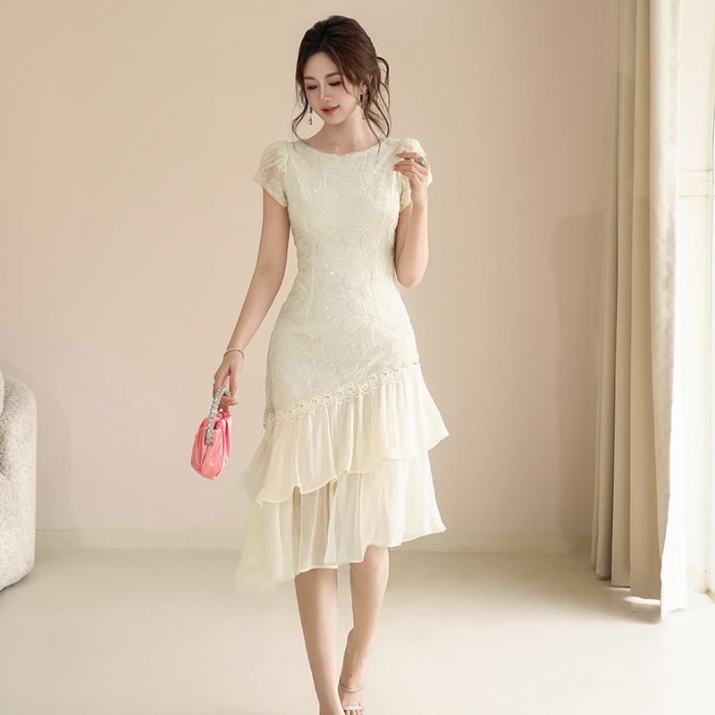 アシンメトリーな裾が目を惹くパーティードレス。