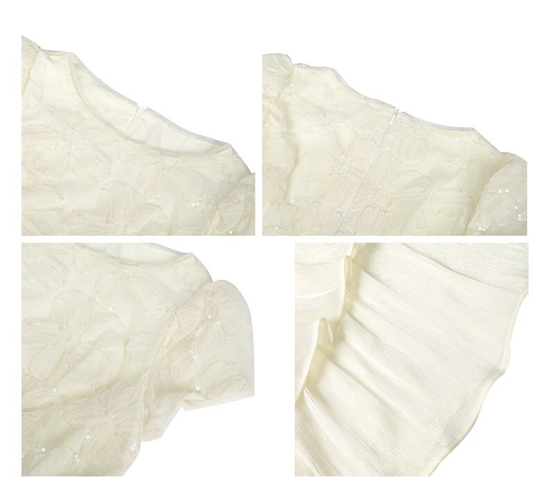 上半身にほどこされたお花刺繍が女性らしさを引き立てる。