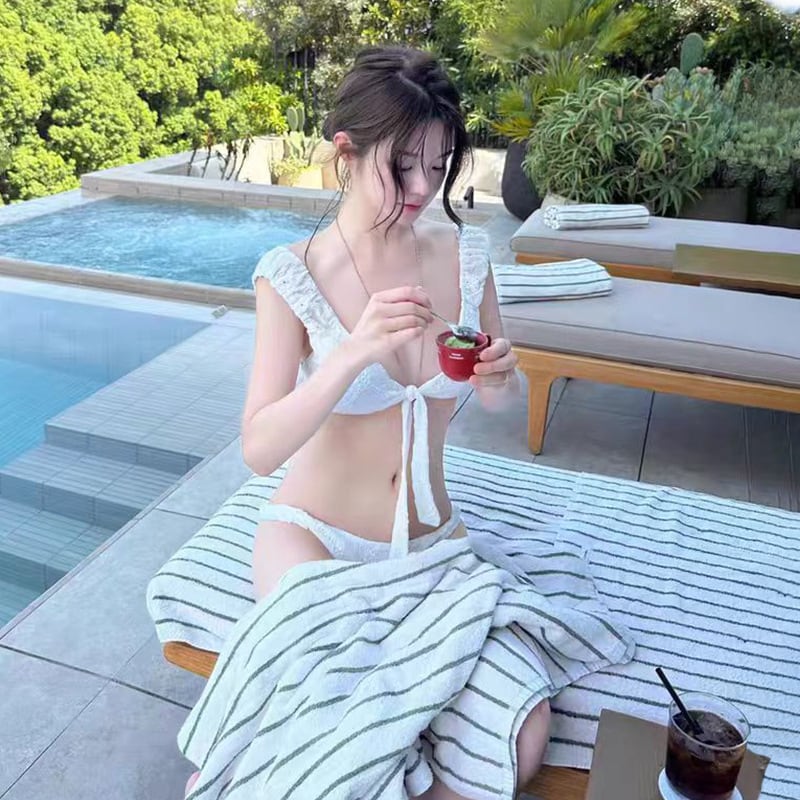 深い胸元が印象的な大人可愛いビキニ。