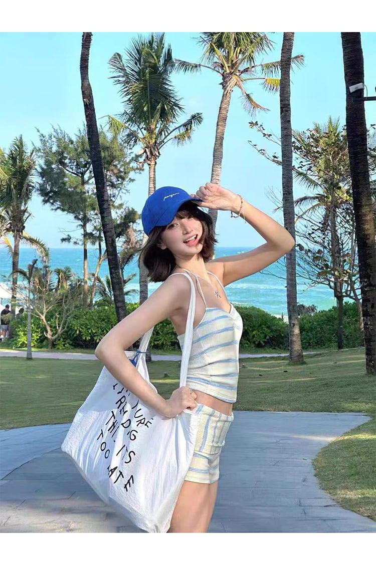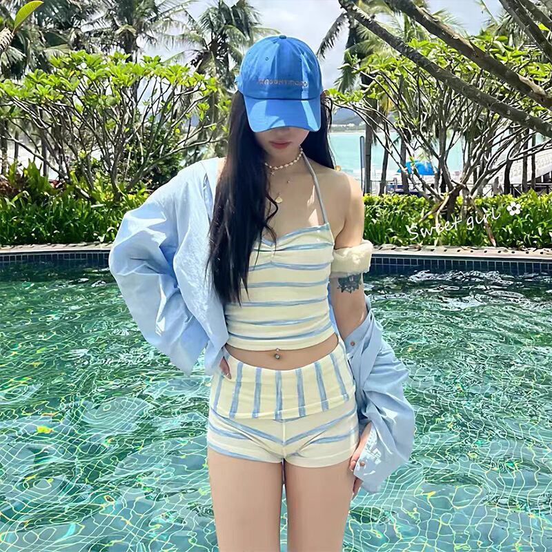 【水着】 韓国 水着 タンキニ 体型カバー ラッシュガード レディース 水着 2点セット 可愛い かわいい おしゃれ 20代 30代 40代 50代 ママ 水着 パンツ 海 ビーチ プール リゾート スイムウェア ストライプ L XL