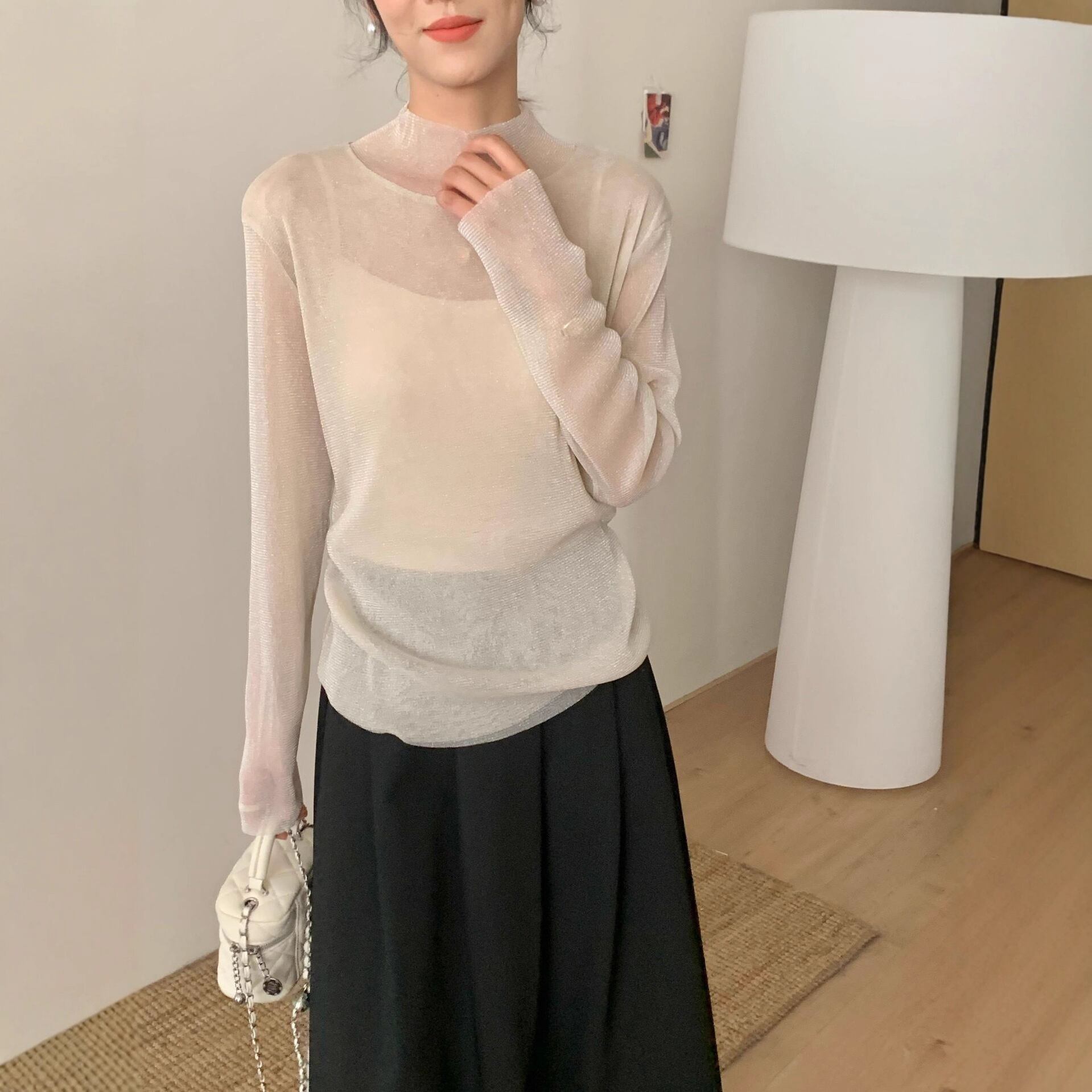 ハーフハイネックでお首まわりを日焼けからカバー。